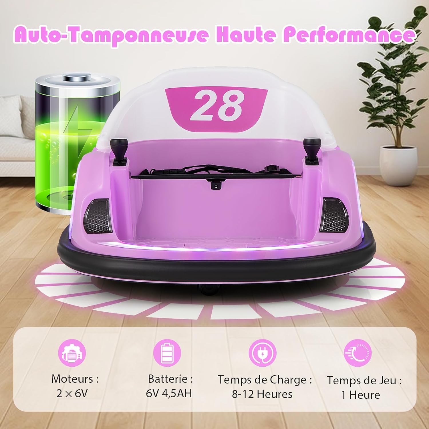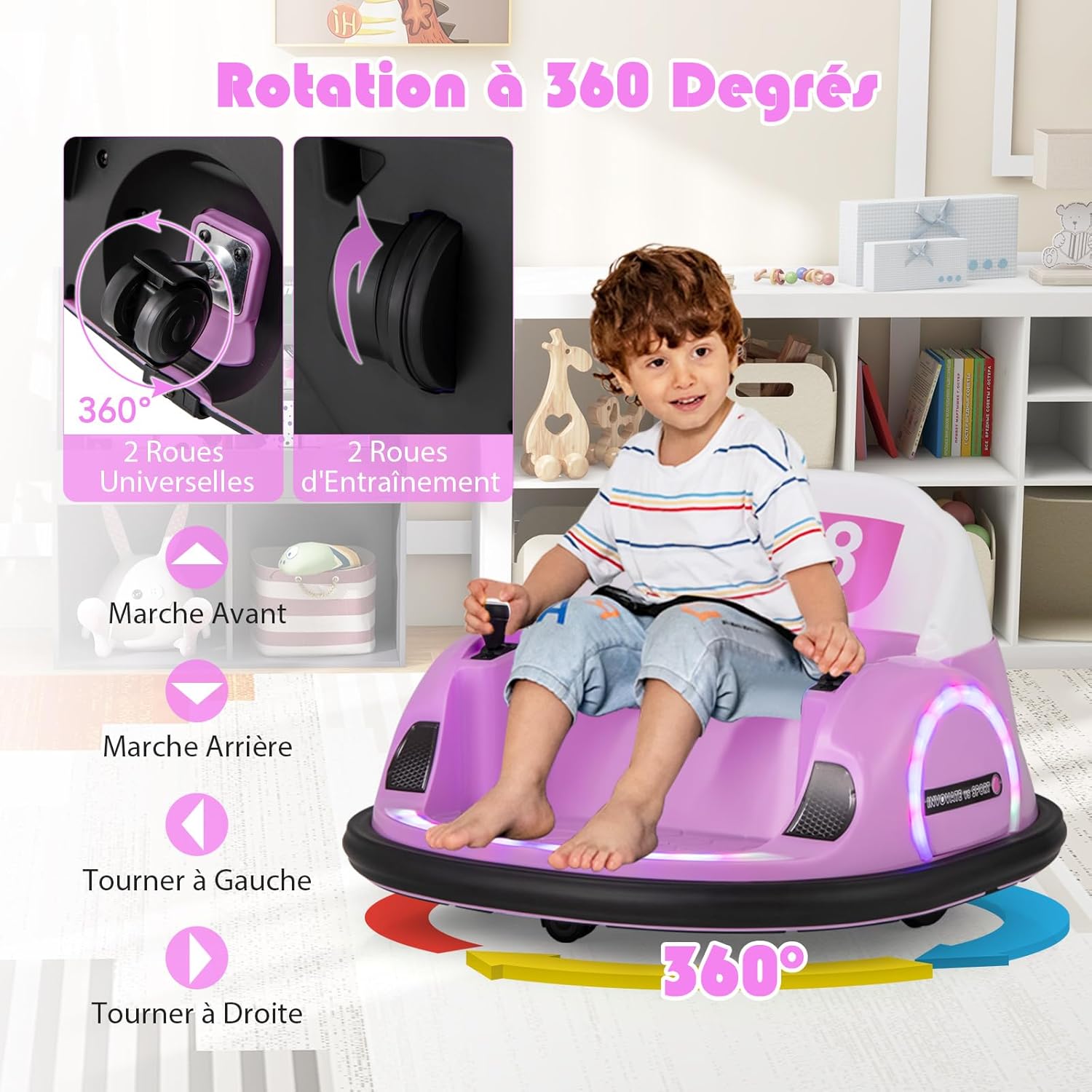| Libellé | Auto-tamponneuse enfants avec led clignotantes, voiture electrique enfants avec télécommande rose |