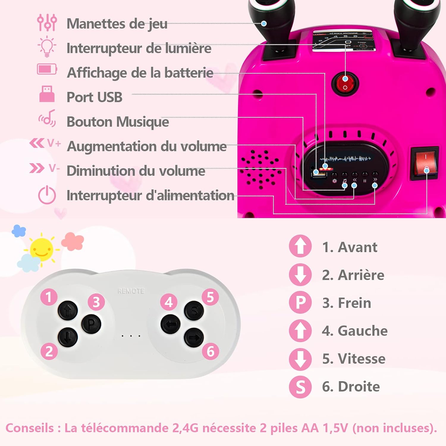 - Caractéristiques de sécurité multiples : la bande de pare-chocs ronde et douce intégrée offre une protection blindée tout autour et permet aux enfants de s'amuser en toute sécurité. De plus, le démarrage lent évite efficacement les accélérations brusques ou les sursauts des enfants. La ceinture de sécurité peut être ajustée pour s'adapter parfaitement aux enfants en pleine croissance et offrir une meilleure protection.