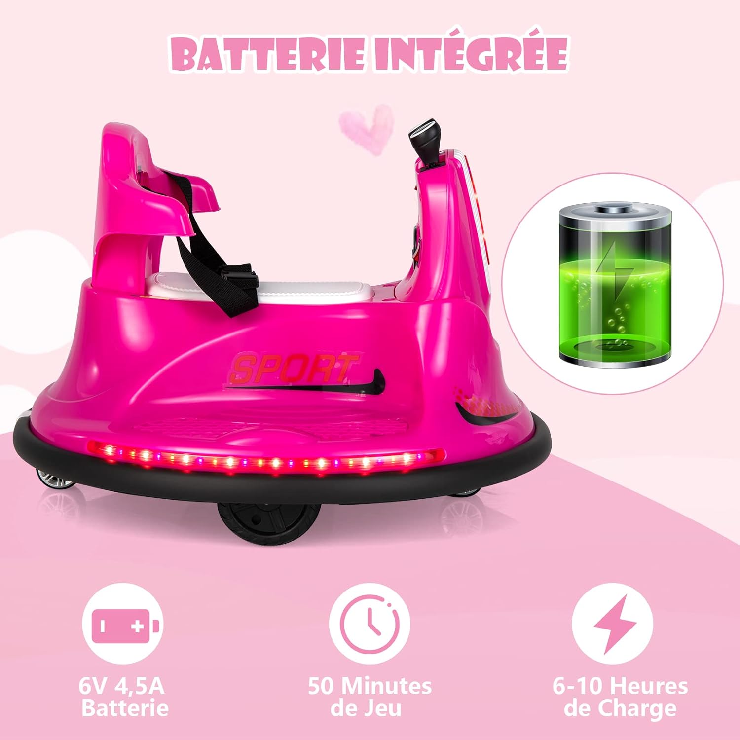 | Libellé | Auto tamponneuse tout-petits, voiture électrique enfants 6 v avec télécommande rotation à 360 degrés,rose |