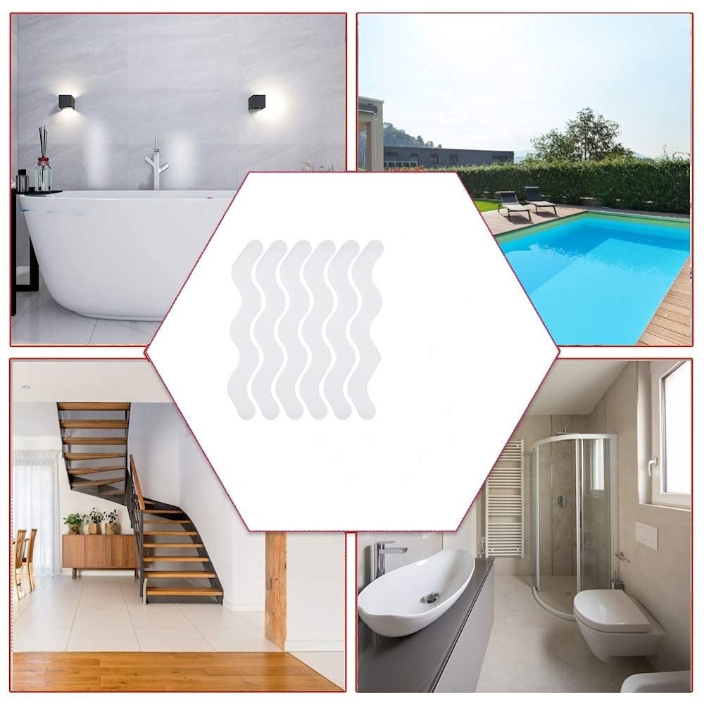 Forte adhérence : Ces autocollants antidérapants adhèrent fermement aux surfaces lisses et offrent une adhérence fiable pour votre sécurité. L'adhésif spécial garantit que les autocollants se retirent facilement sans laisser de résidus.