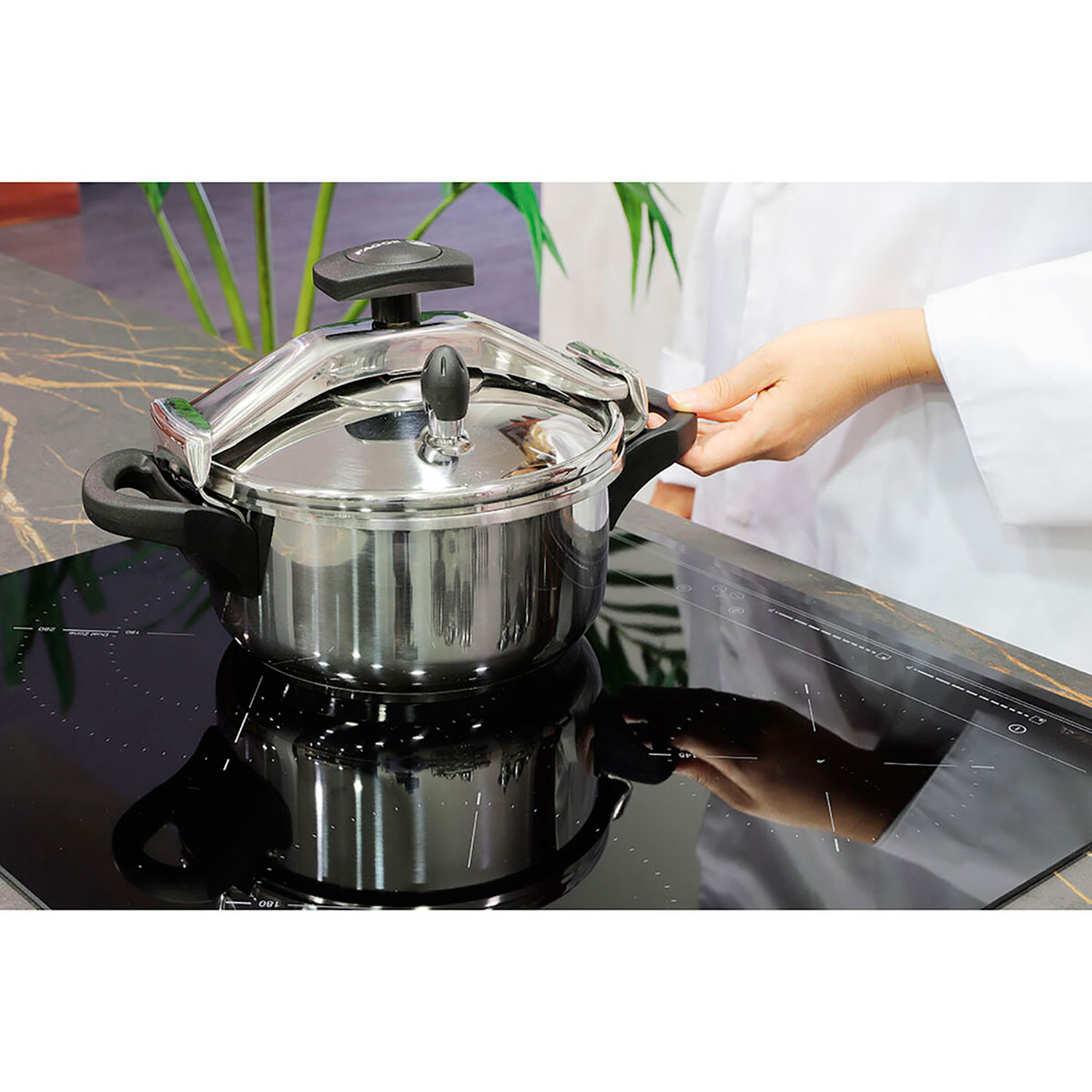 - Efficace sur le plan énergétique : il permet de cuire les aliments en un tiers du temps requis par une marmite traditionnelle et de conserver toutes les propriétés et les nutriments des aliments. Sa conception pompée permet une distribution optimale de la chaleur, ce qui permet d'économiser jusqu'à 40 % d'énergie.