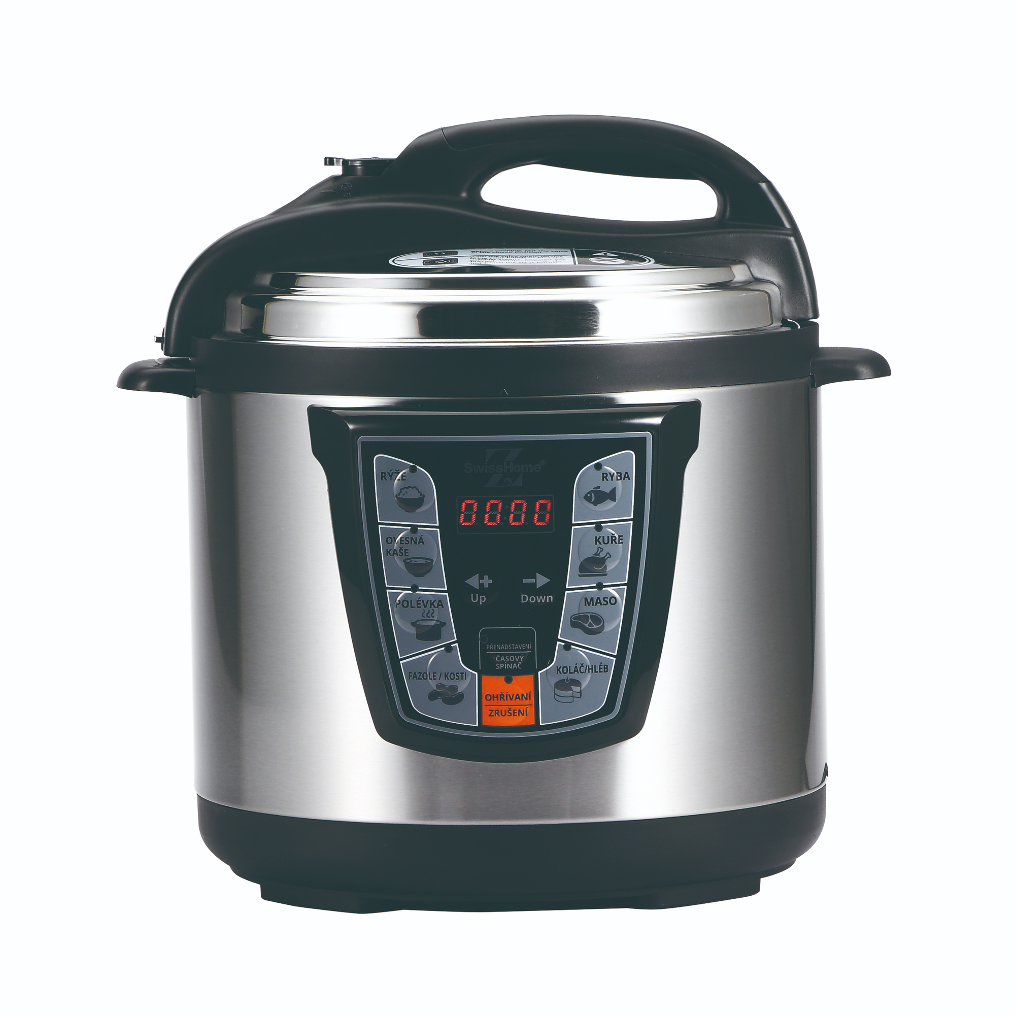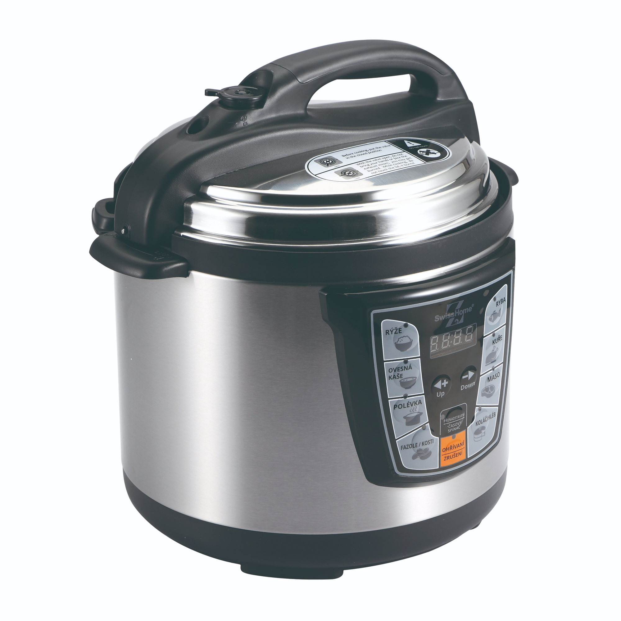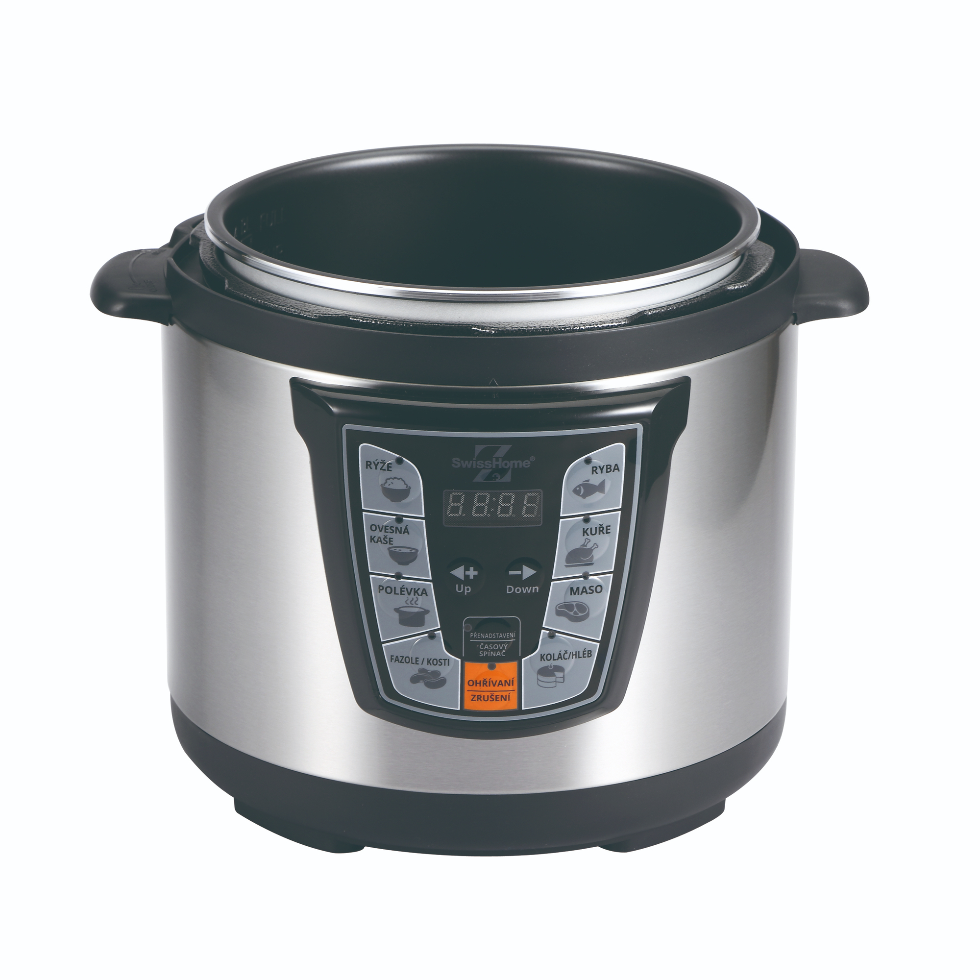 Autocuiseur électronique Swiss Home d'une capacité de 6 litres. - Puissance : 1000 W, 220V-50Hz. Comprend les accessoires suivants : - Câble d'alimentation. - Gobelet de mesure. - Cuillère à mesurer. - Manuel d'instructions.