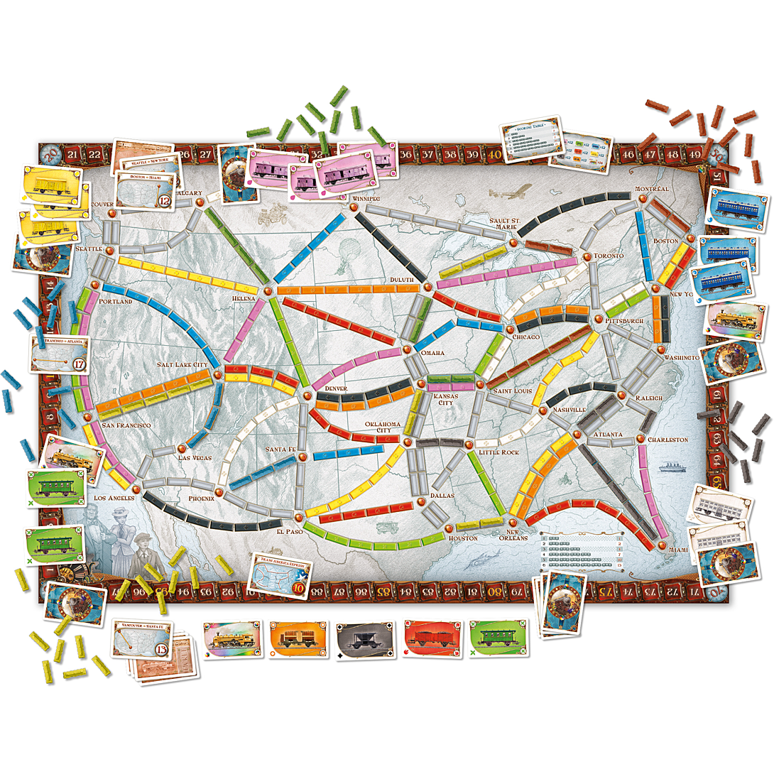 Partez à la conquête du rail ! Reliez les villes emblématiques des USA, accomplissez vos objectifs et revivez l’aventure du chemin de fer en famille !