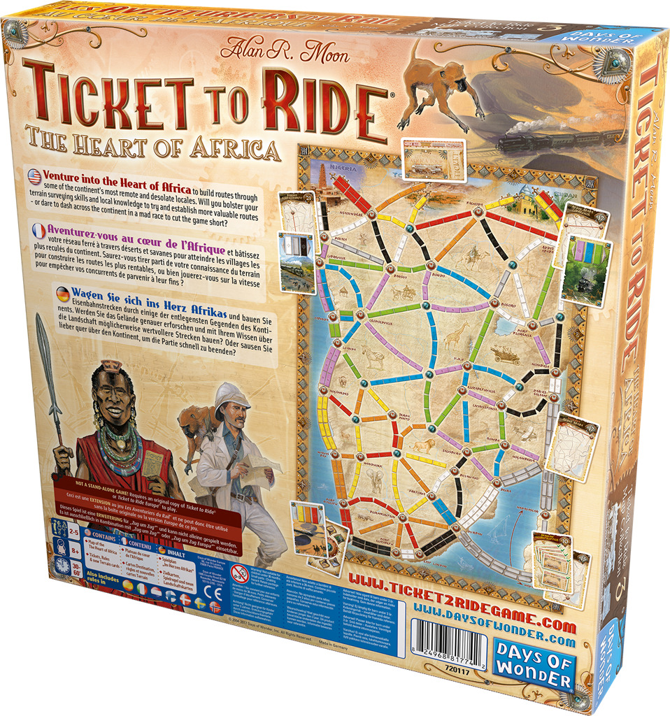 Cette boîte est bien plus qu'une nouvelle extension du jeu du base. Avec celle-ci, l'auteur a voulu proposer quelques modifications des règles pour offrir aux joueurs une nouvelle expérience de jeu. Ainsi, cette extension est la première à apporter des règles supplémentaires qui modifient les mécaniques de jeu de manière significative. Deux nouveautés sont à noter : Les cartes Terrain : L'extension ajoute ces nouvelles cartes afin de pousser les joueurs à revoir leur stratégie. Ils devront désormais choisir à chaque tour entre les cartes Wagon et les cartes Terrain et ainsi orienter leurs plans dans l'une ou l'autre direction. La couleur des villes : L'autre nouveauté se trouve au niveau de la carte. Si dans les autres volets, les villes n'étaient jamais connectées à deux voies de la même couleur, sur le continent africain, c'est tout l'inverse. En Afrique, chaque ville ou village est dédié à une couleur précise. Les joueurs devront être particulièrement attentifs aux couleurs des cartes afin de ne pas laisser passer leur chance.
