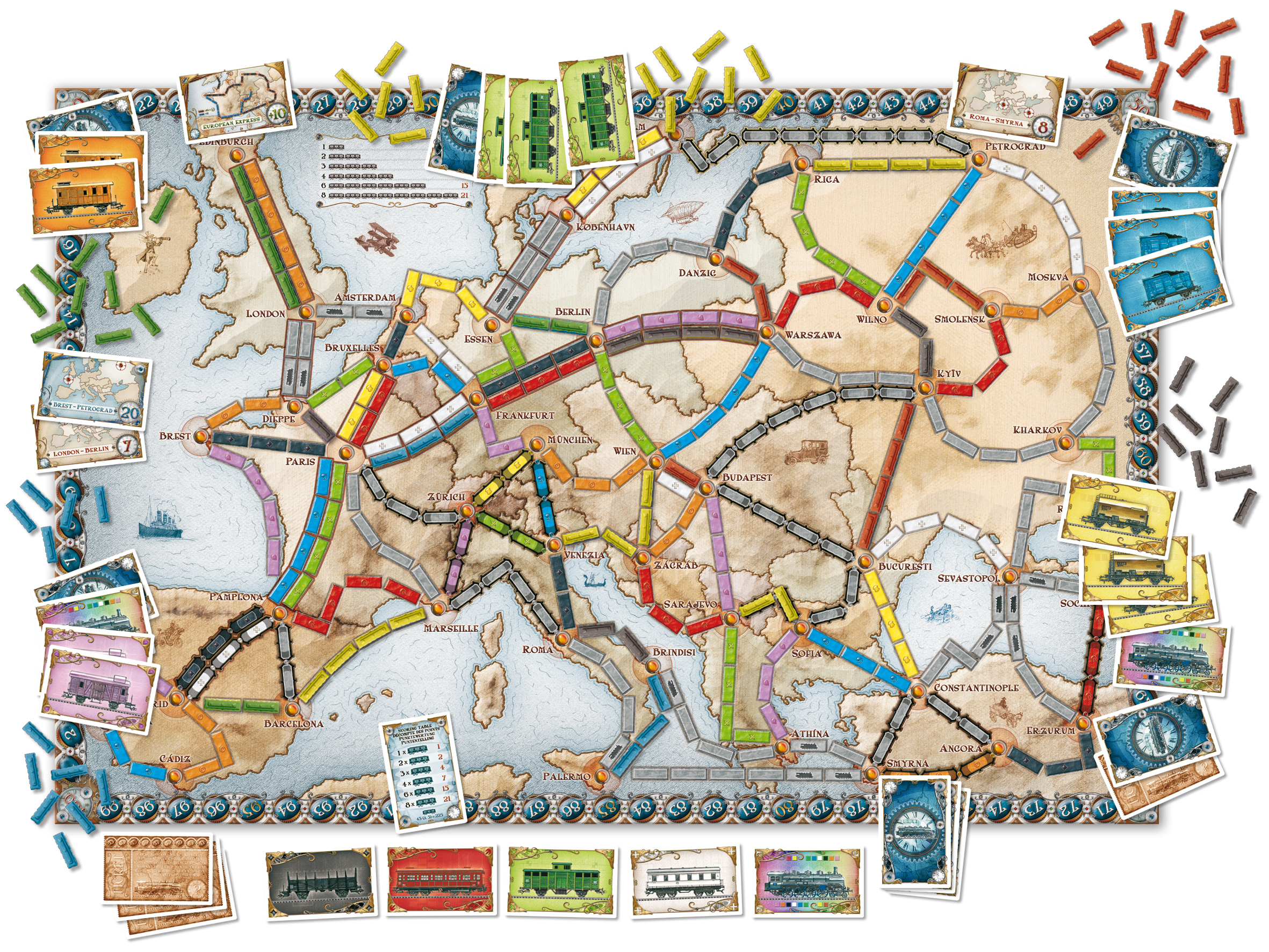 Les Aventuriers du Rail Europe propose de nouvelles de nouveaux éléments de jeu et des règles de tickets longue distance et de gares !