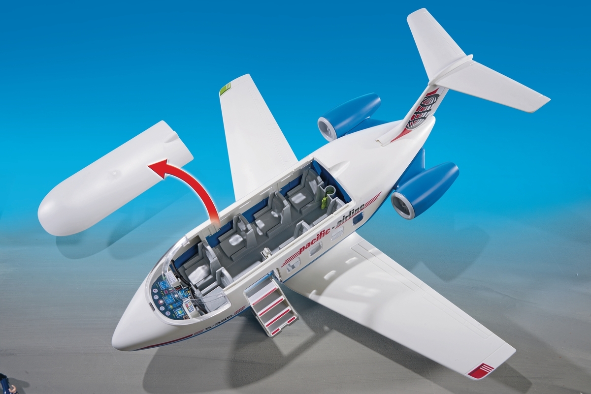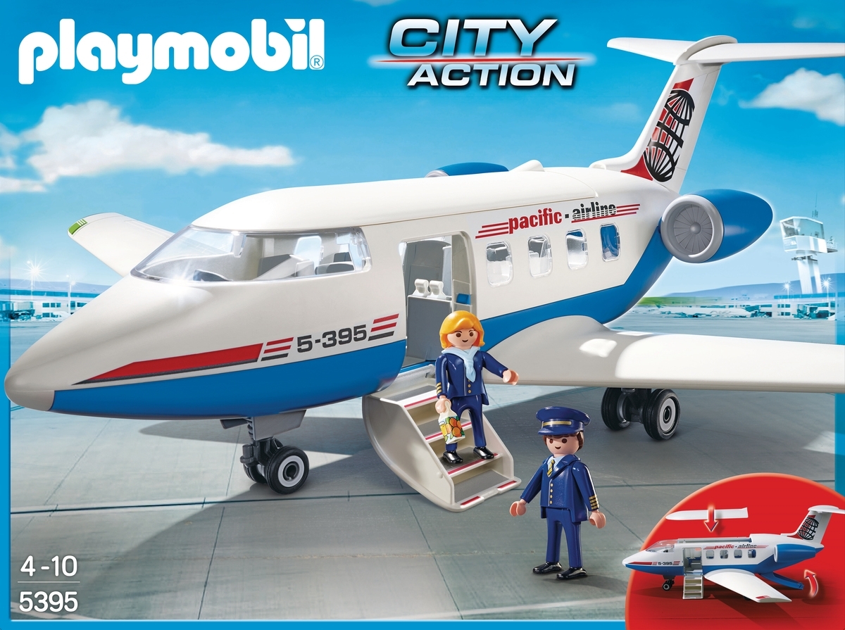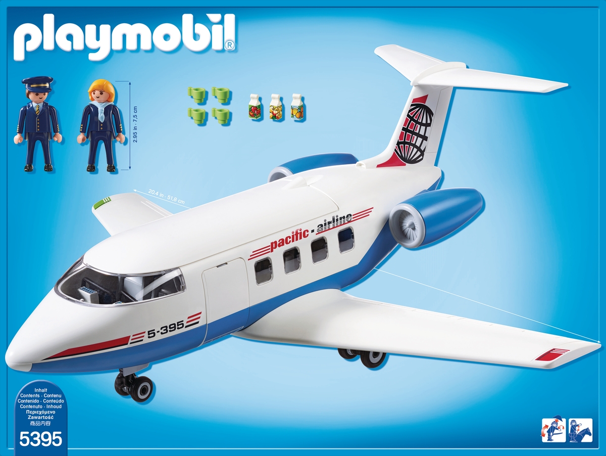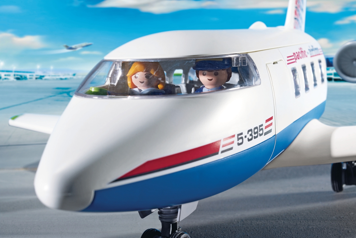| Plus produit | - Comprend un espace pour les bagages dans la soute.\n- Les dimensions de l\'avion sont parfaitement adaptées pour le porter facilement.\n- Le toit est amovible et la porte latérale s\'ouvre.\n- Peut être complété avec les Agents avec tracteur à bagages (réf. 5396). Les agents guident le pilote pour positionner l\'avion sur la piste de décollage.\n-Dimensions : 51 x 52 x 20 cm (LxPxH). |