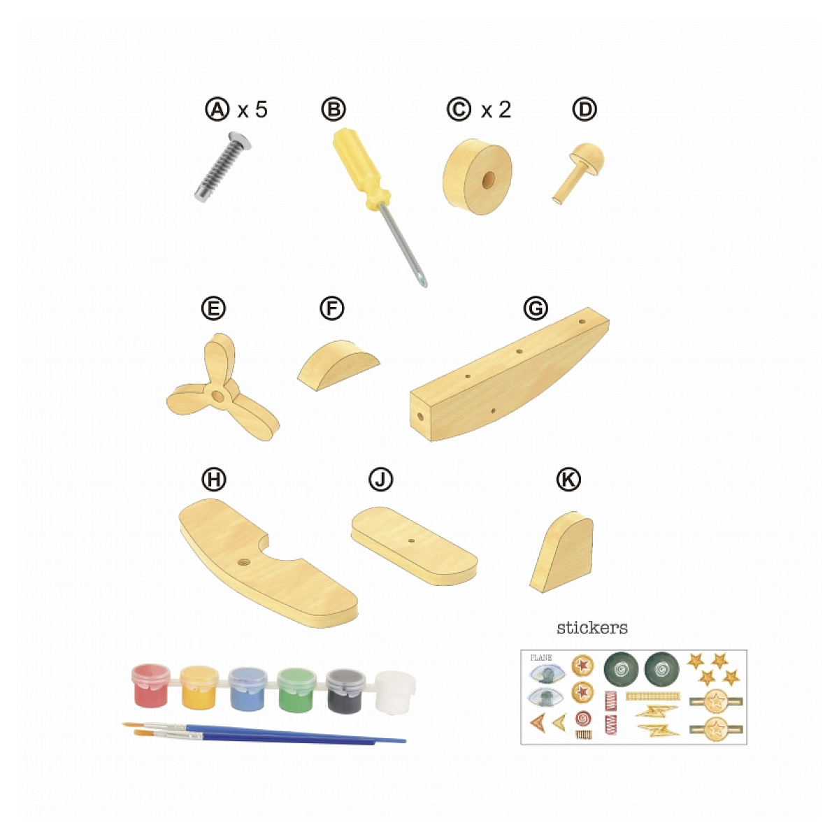 | La boîte contient | Pièces en bois, vis et tournevis, peinture, pinceaux et auto-collants |