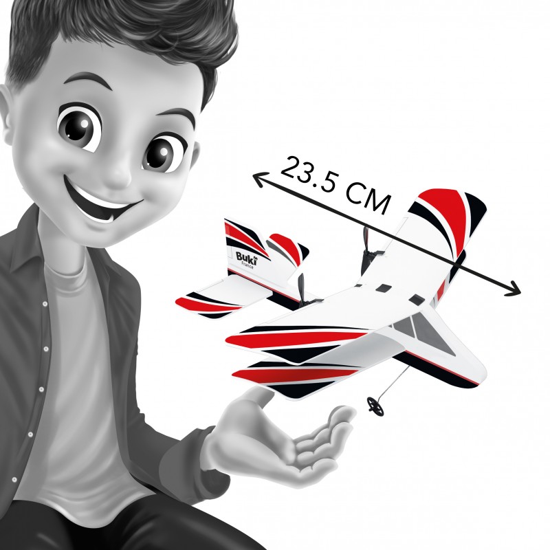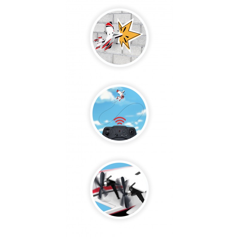 Un avion radiocommandé facile à piloter en intérieur et en extérieur. Il se stabilise grâce à son gyroscope intégré. Son corps est composé d’une mousse antichocs. L'avion fonctionne sur batterie lithium 3.7V et se recharge grâce au câble USB inclus. La radiocommande a une portée de 40 mètres et nécessite 3 piles LR06-AA non incluses. Notice illustrée en couleurs. Dès 8 ans.