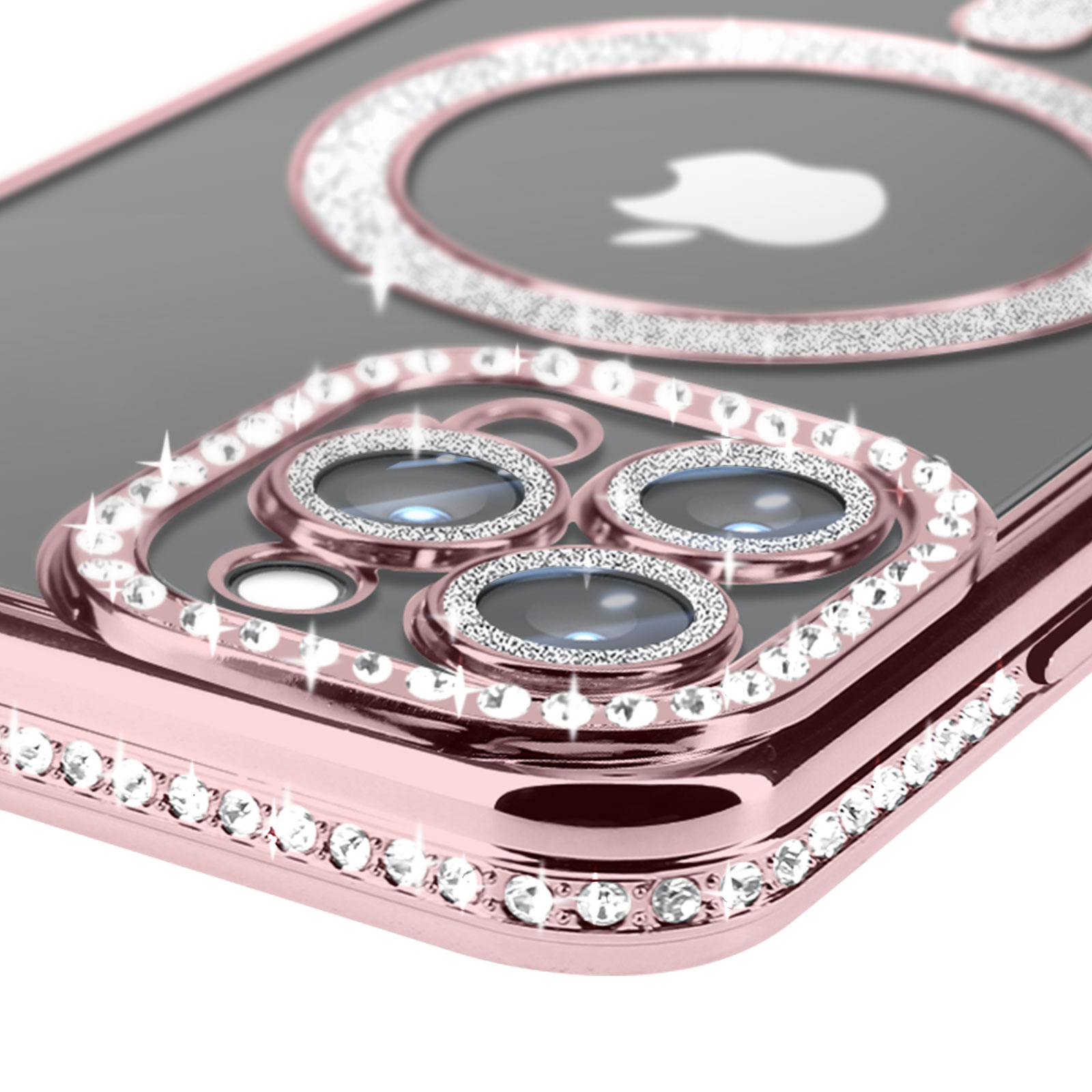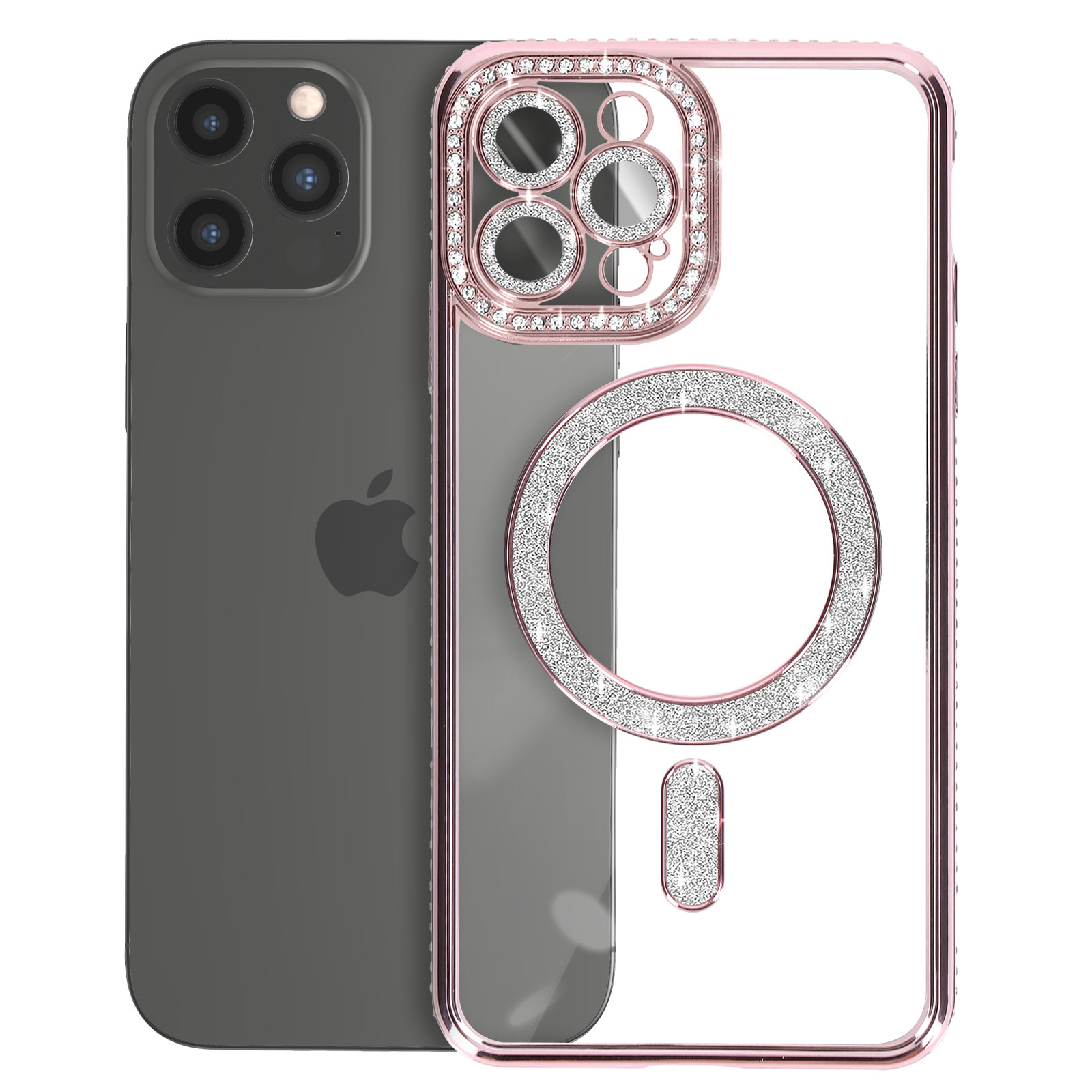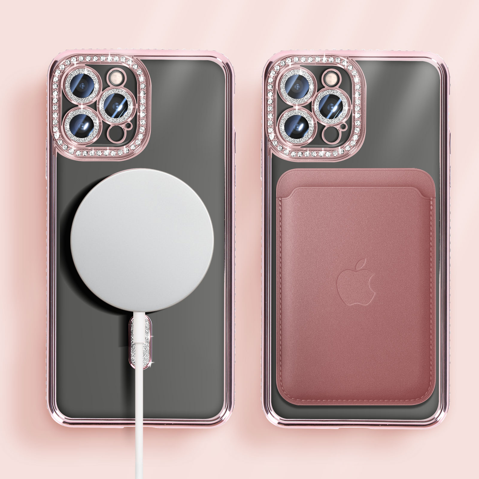 Avizar Coque Diamant pour iPhone 12 Pro Max Protection MagSafe Contour Strass Rose champagne