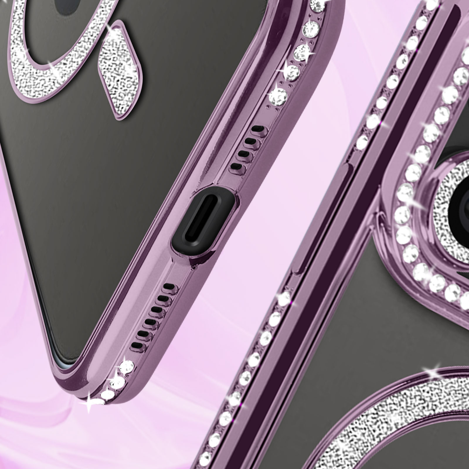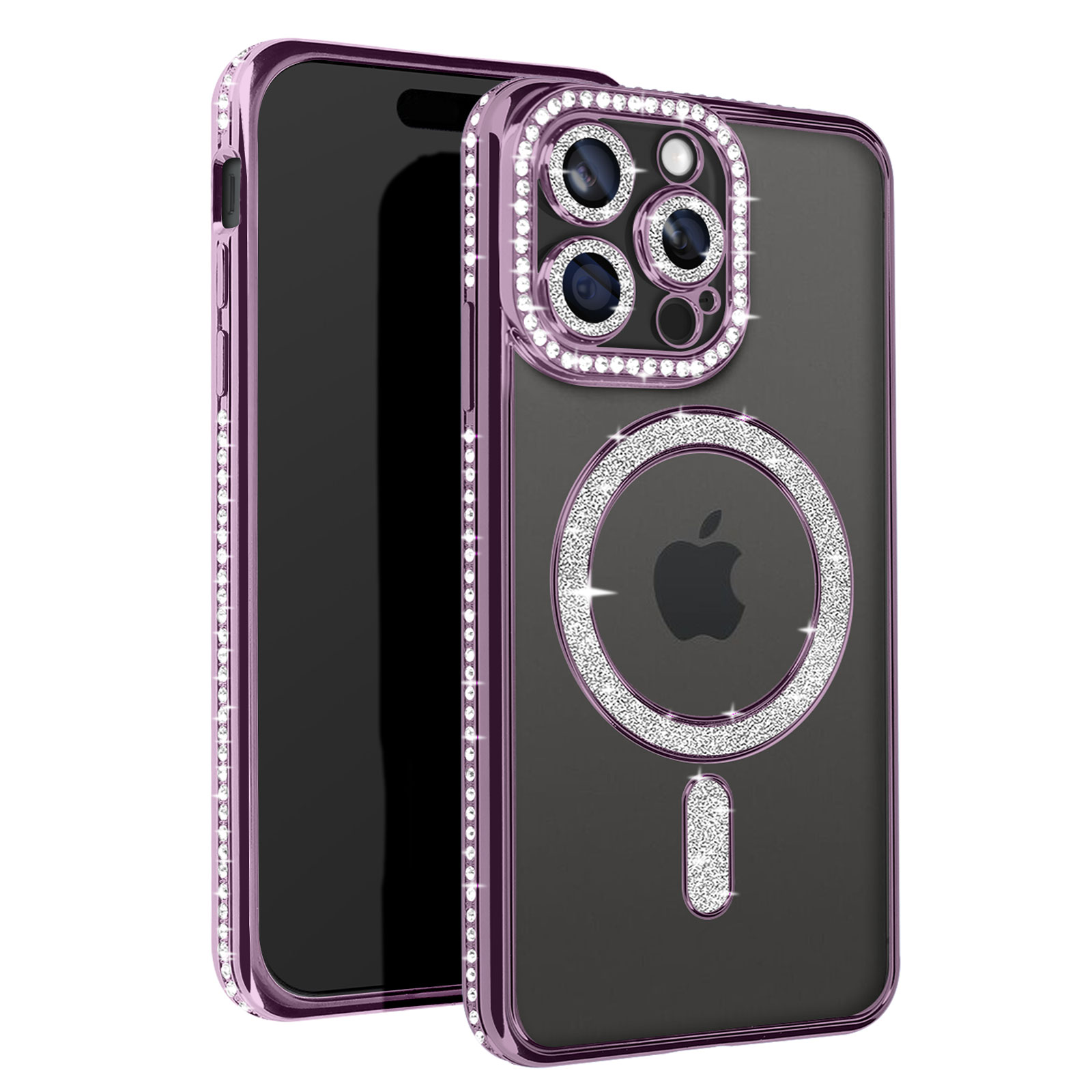 Avizar Coque Diamant pour iPhone 15 Pro Max Protection MagSafe Contour Strass Violet