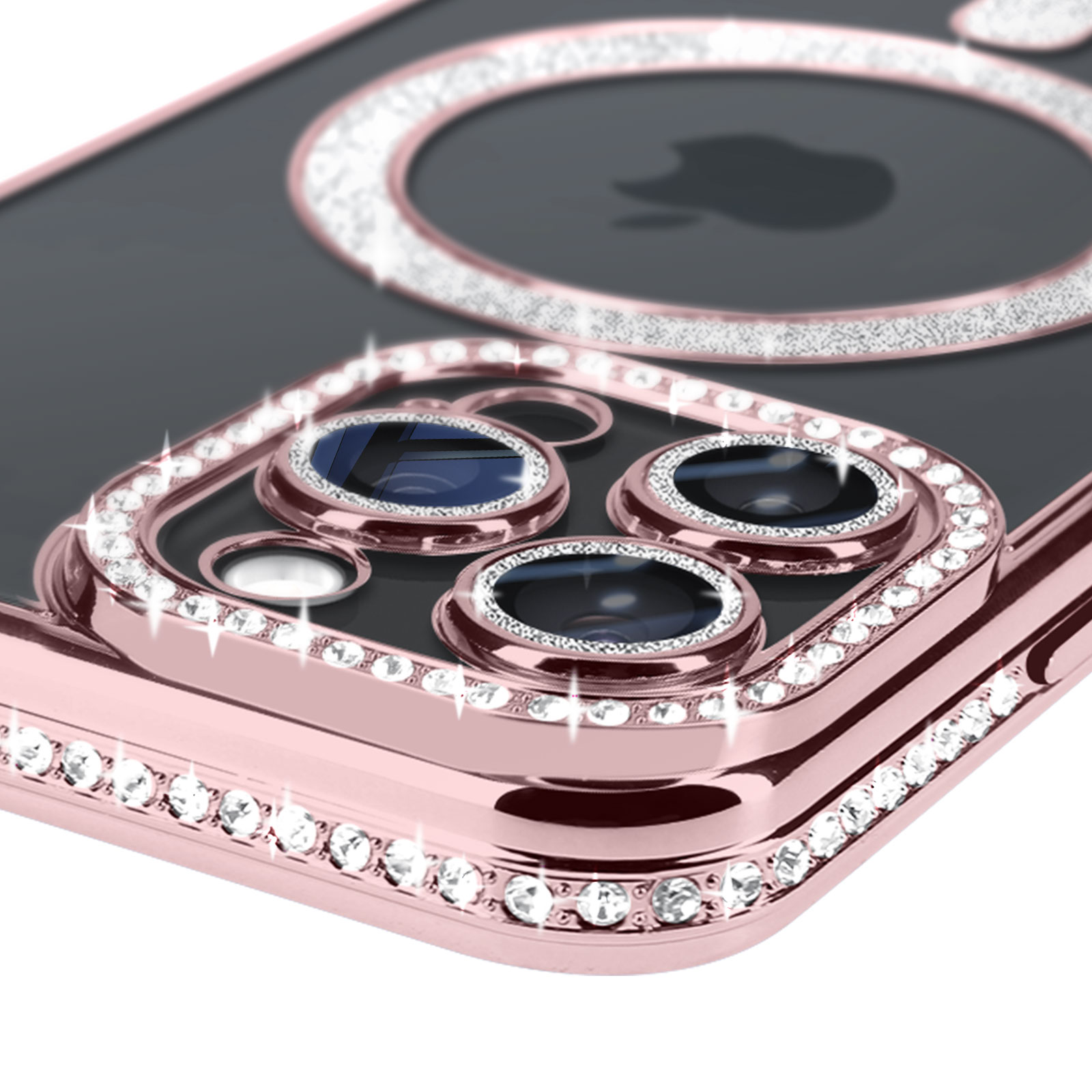 Avizar Coque Diamant pour iPhone 15 Pro Protection MagSafe Contour Strass Rose champagne