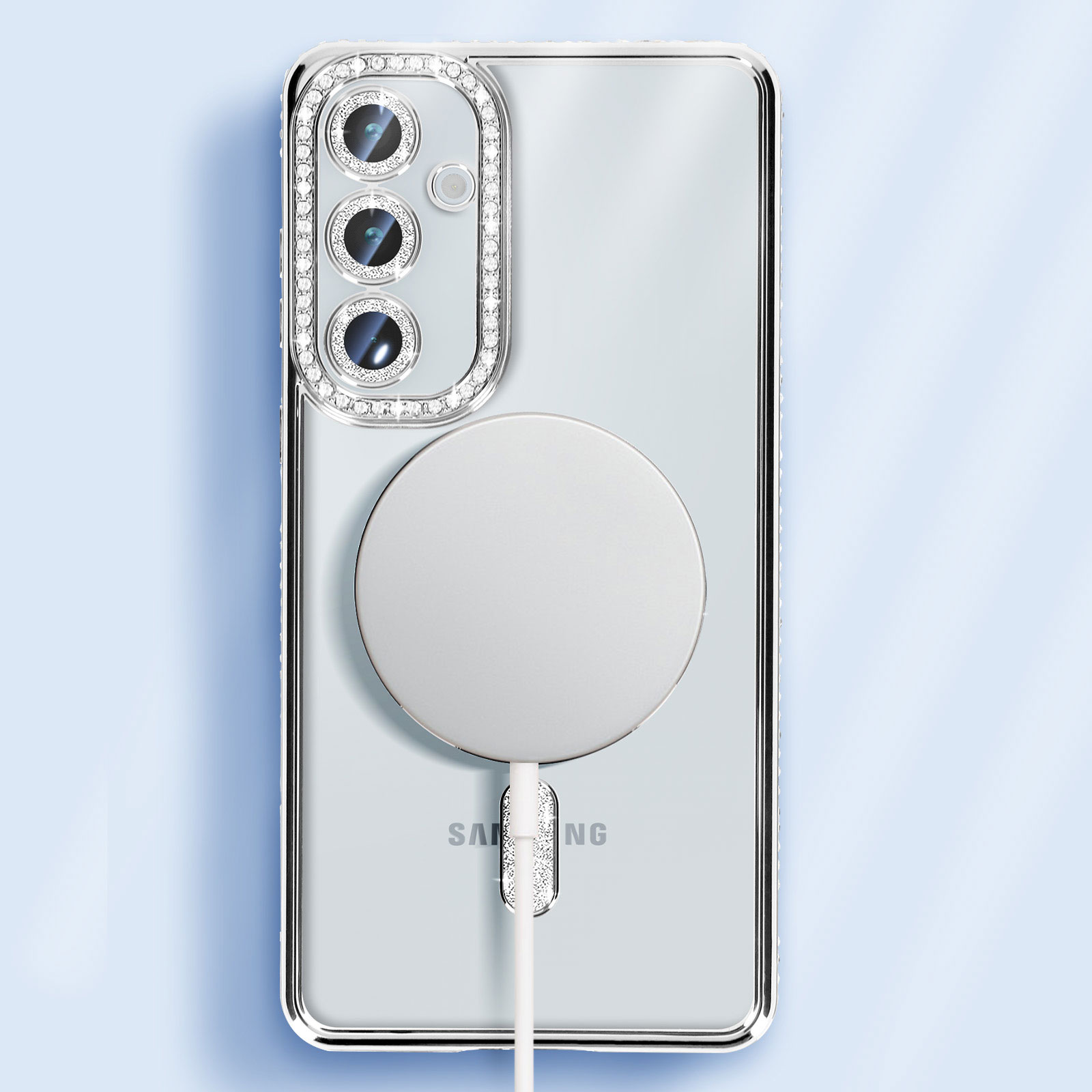 Coque diamant pour Samsung Galaxy A35 au contour strass très élégante et unique. Conception résistante avec bloc caméra protégé. Dos transparent. Cercle magnétique compatible accessoires MagSafe. Fonctions accessibles : ports et bouton caméra. Boutons latéraux redessinés.