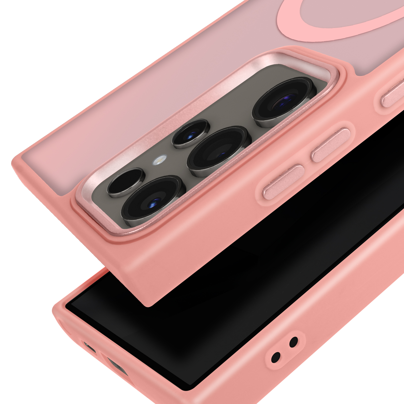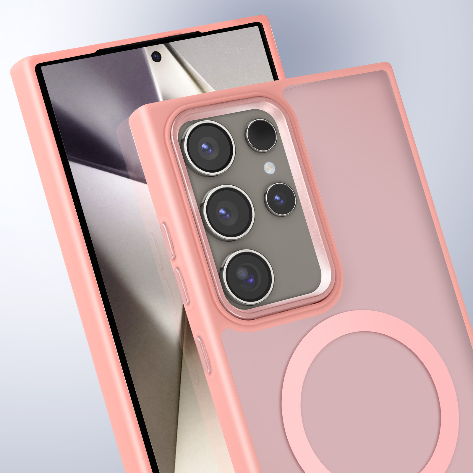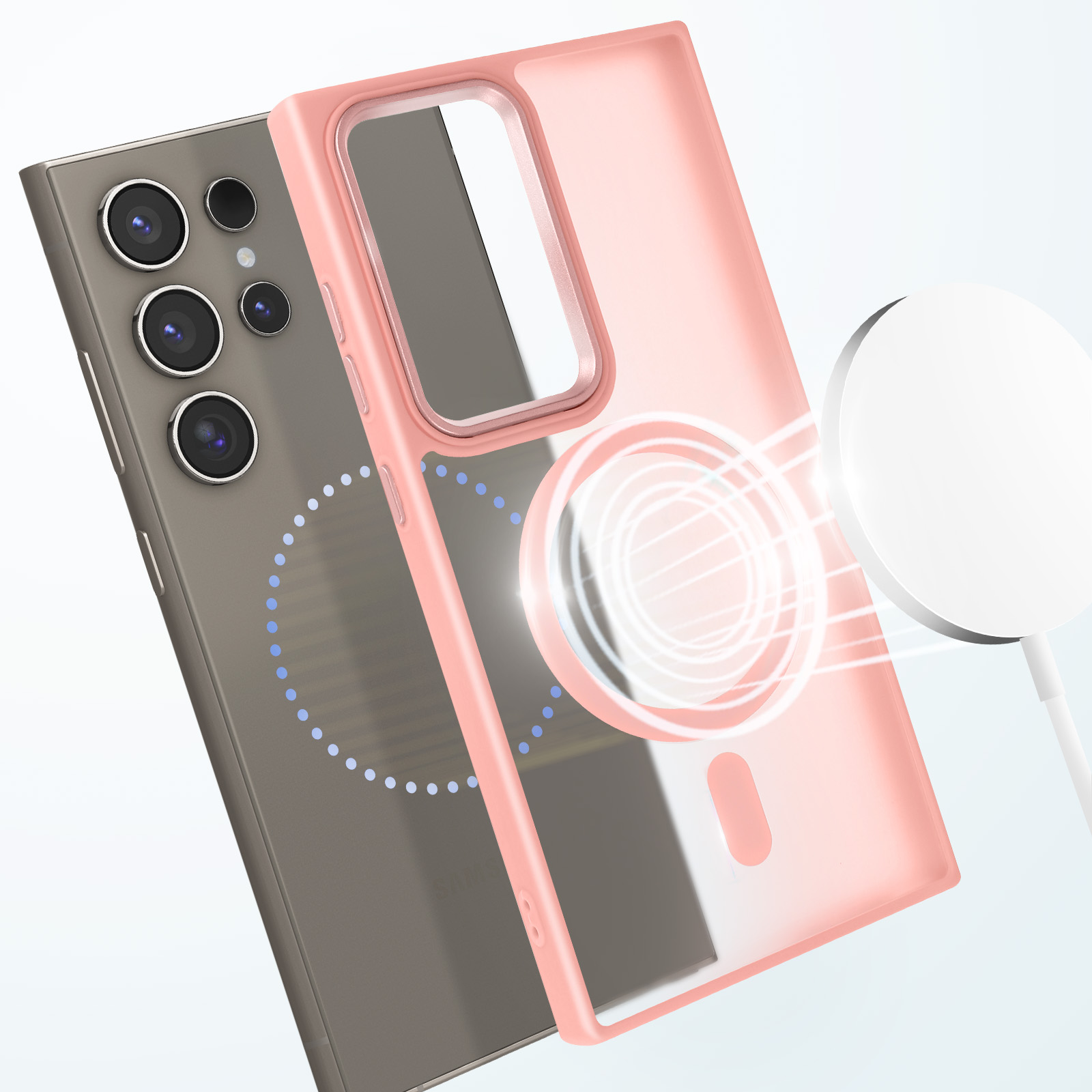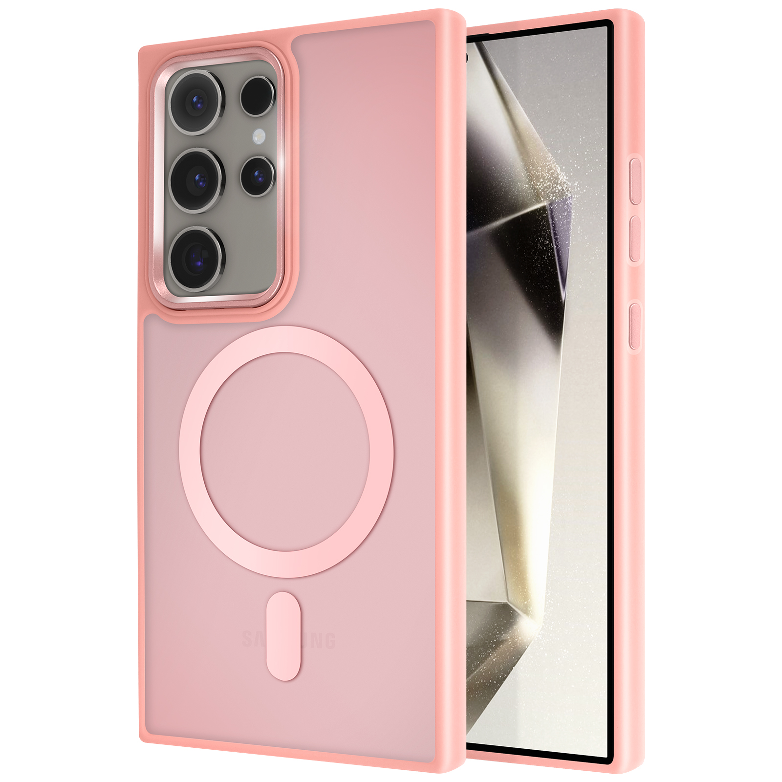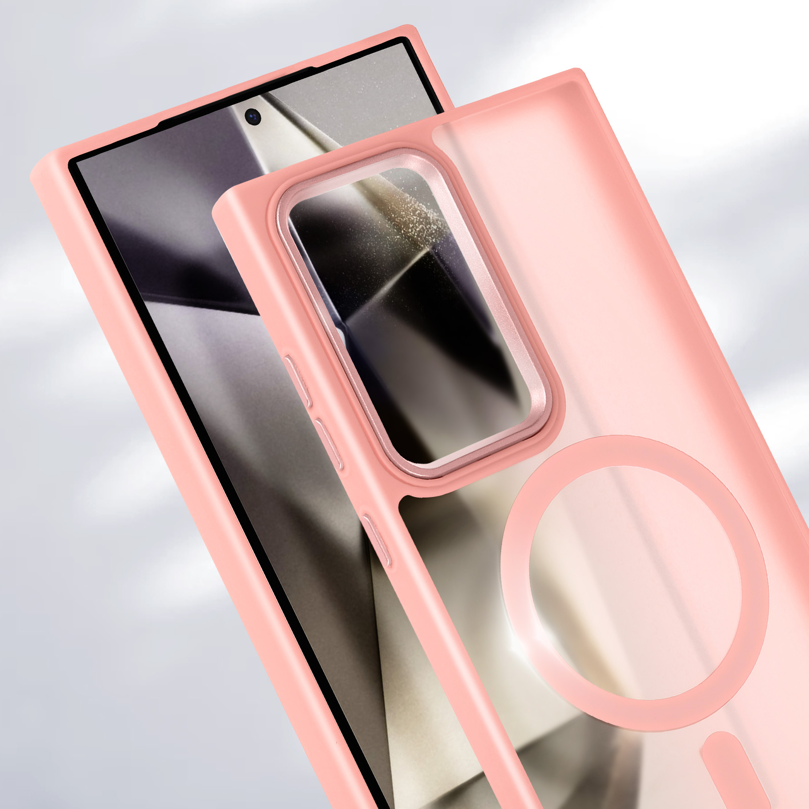 Avizar Coque MagSafe pour Samsung Galaxy S24 Ultra Dos Mat Givré Contour Rose