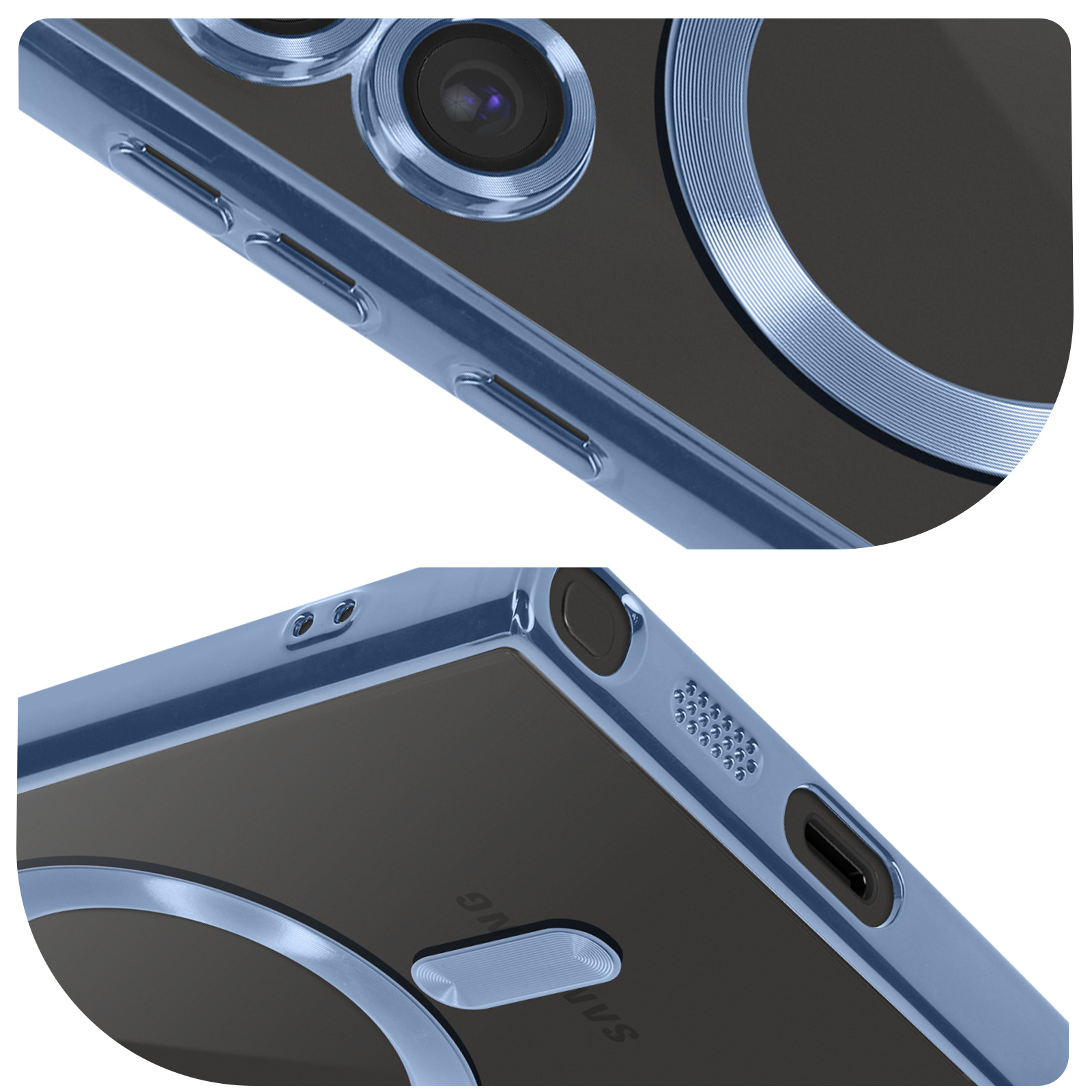 | Libellé | Avizar Coque MagSafe pour Samsung S24 Ultra en Silicone Contour Chromé Bleu |
