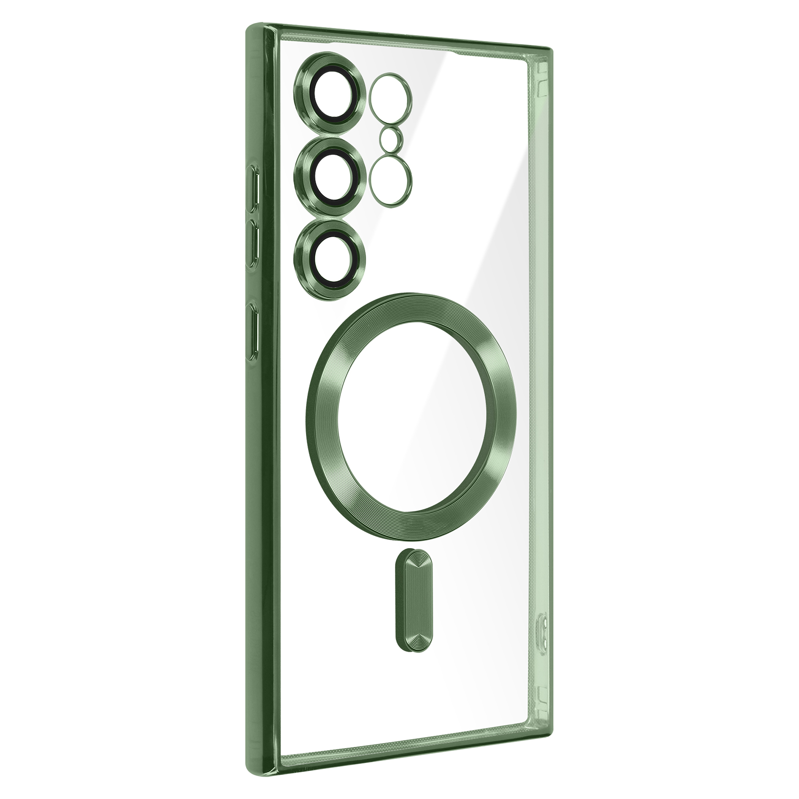 Avizar Coque MagSafe pour Samsung S24 Ultra en Silicone Contour Chromé Vert foncé