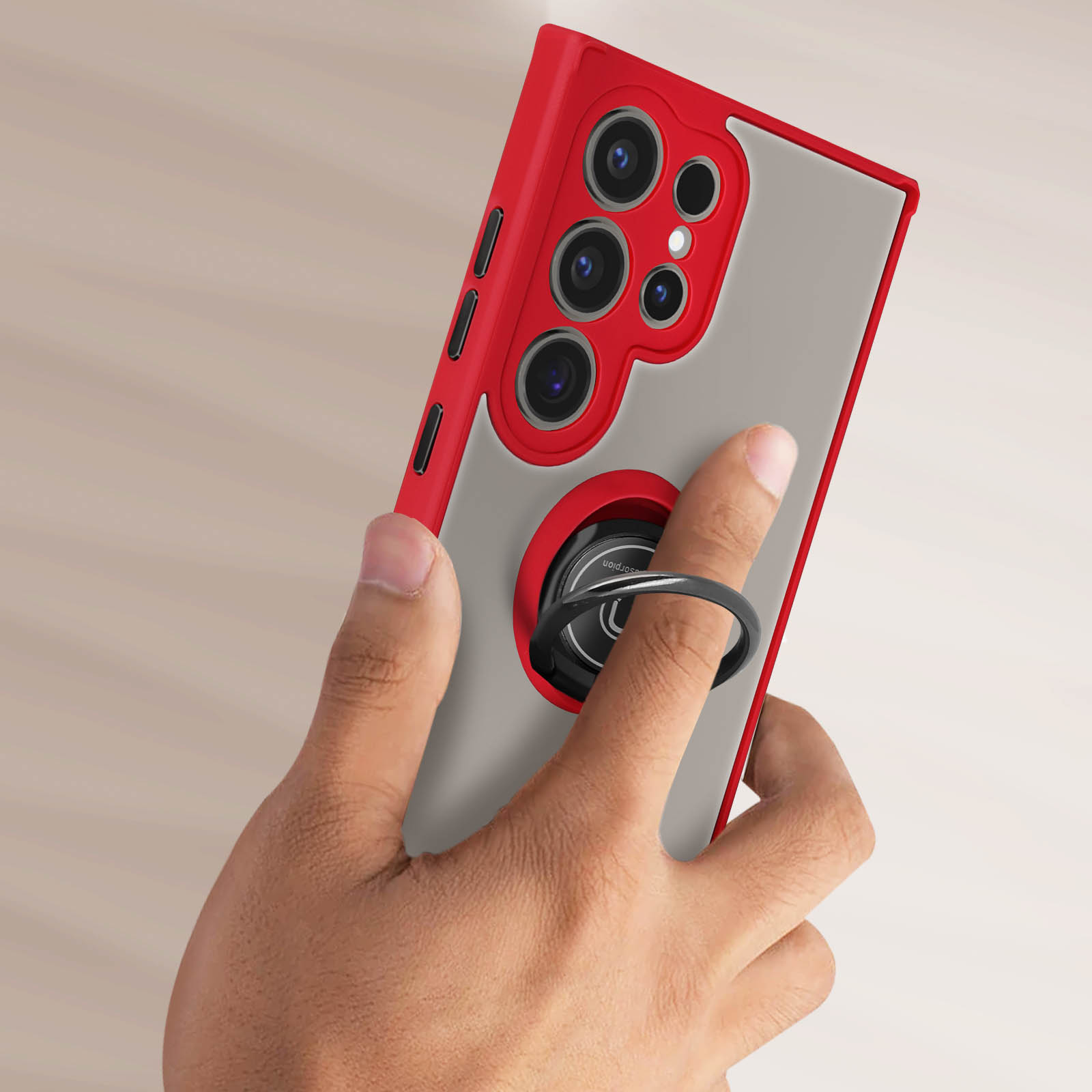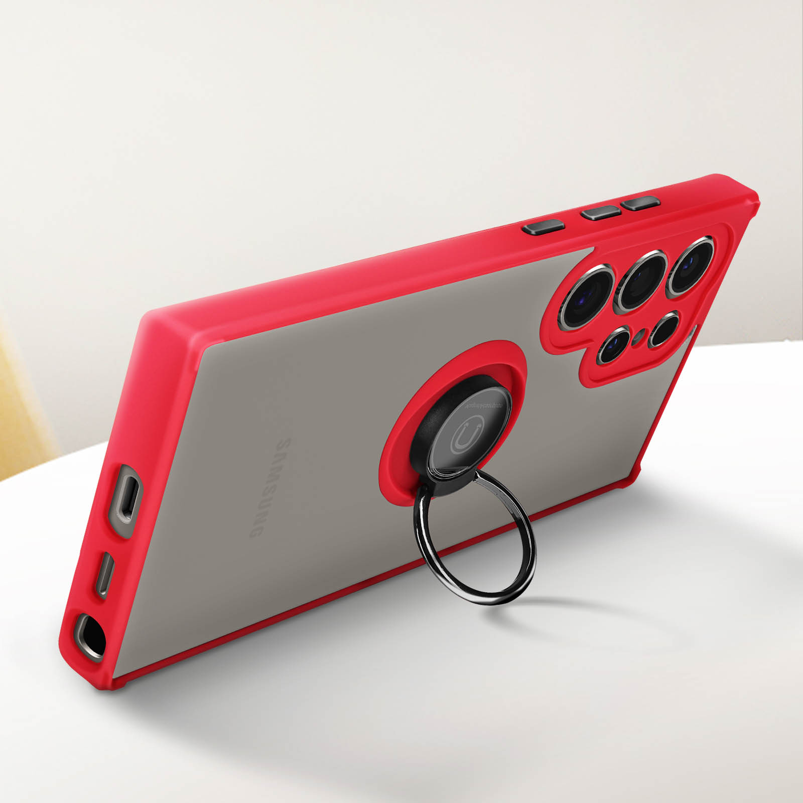 Avizar Coque pour Galaxy S24 Ultra Antichoc avec Bague Support Métallique Rouge