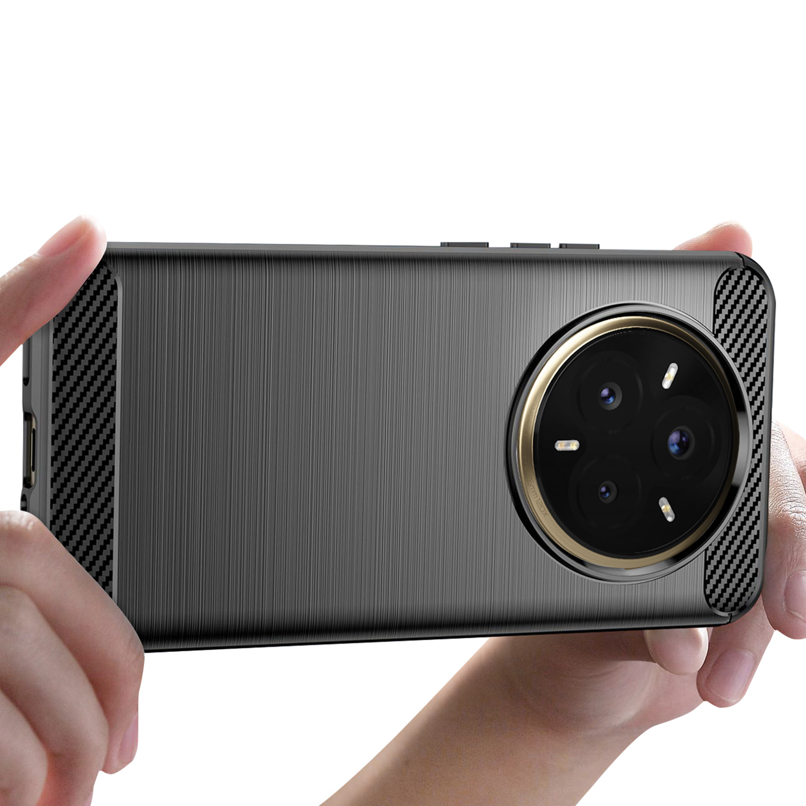Avizar Coque pour Realme 14 Pro Plus Silicone Design Carbone Brossé Noir
