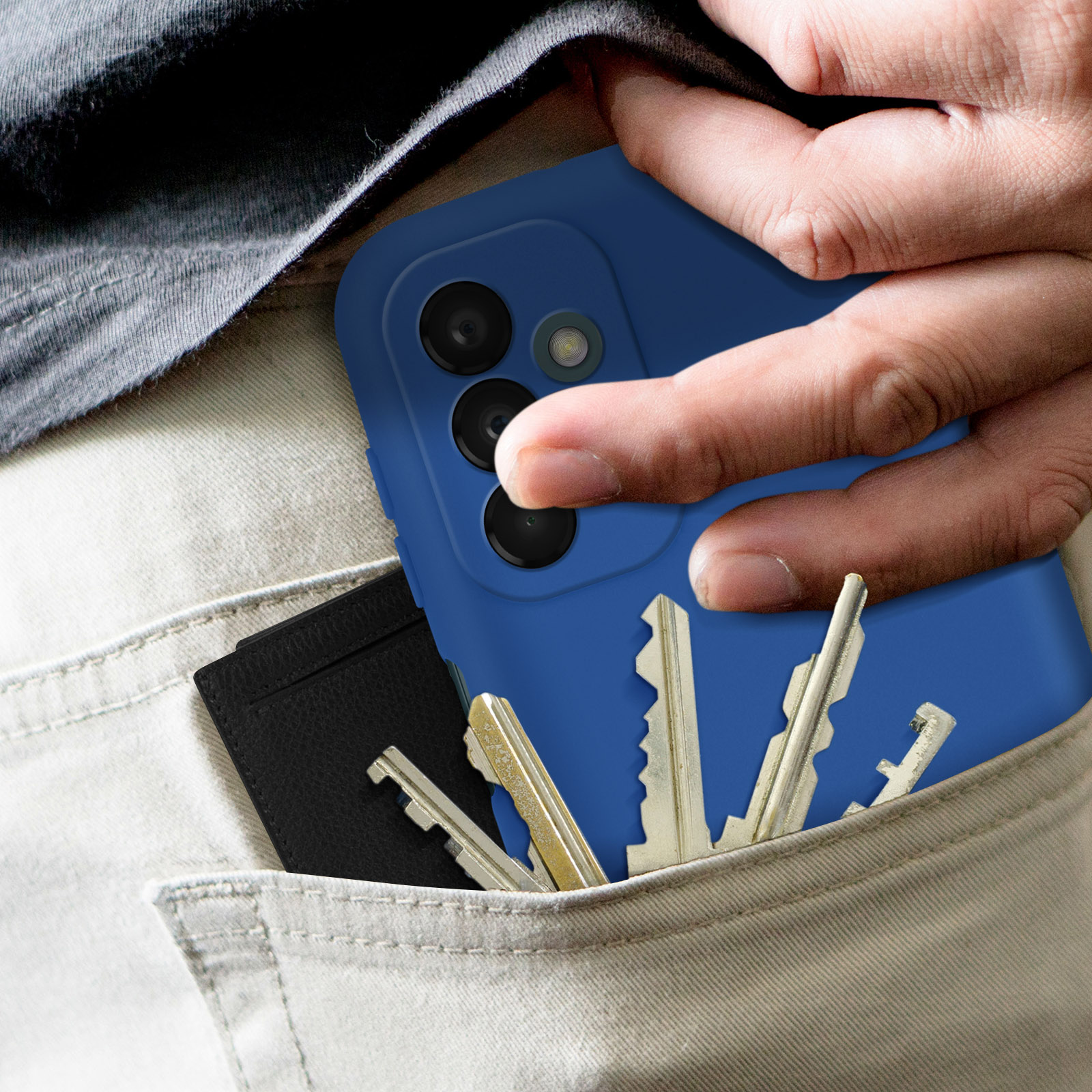 Avizar Coque Soft-Touch pour Galaxy A23 5G en Silicone Semi-rigide Antidérapant Bleu