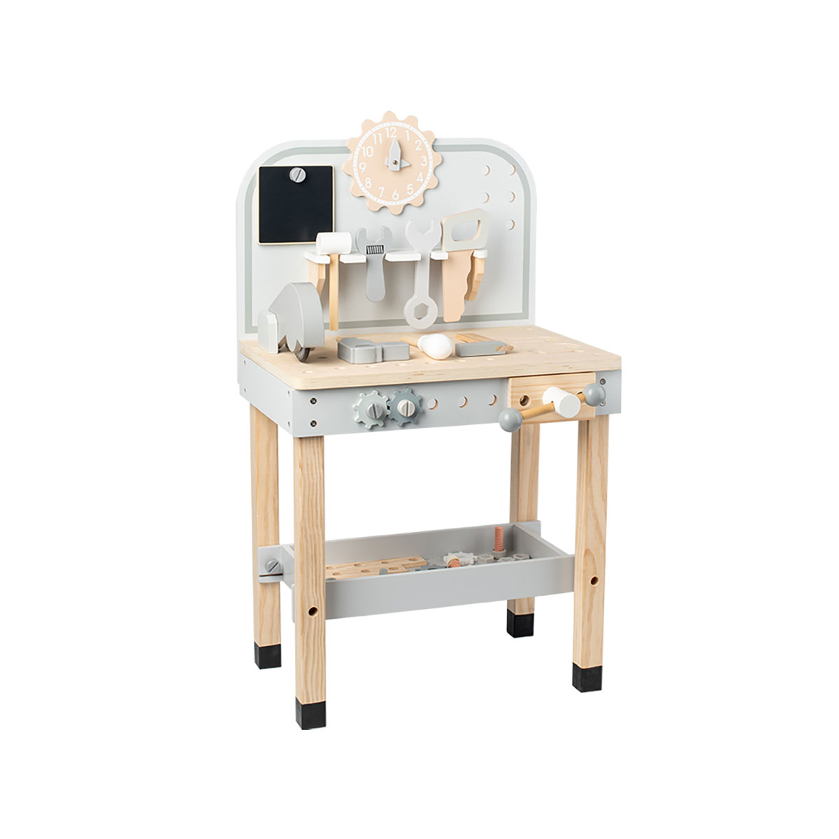L'établi en bois initie les enfants aux jeux d'imitation dès le plus jeune âge. Il comprend de nombreux outils comme scies, clés et perceuses, pour développer leur motricité et leur curiosité. Solide et complet, il est idéal pour inventer, visser ou bricoler tout en s'amusant. Une création en bois certifié.