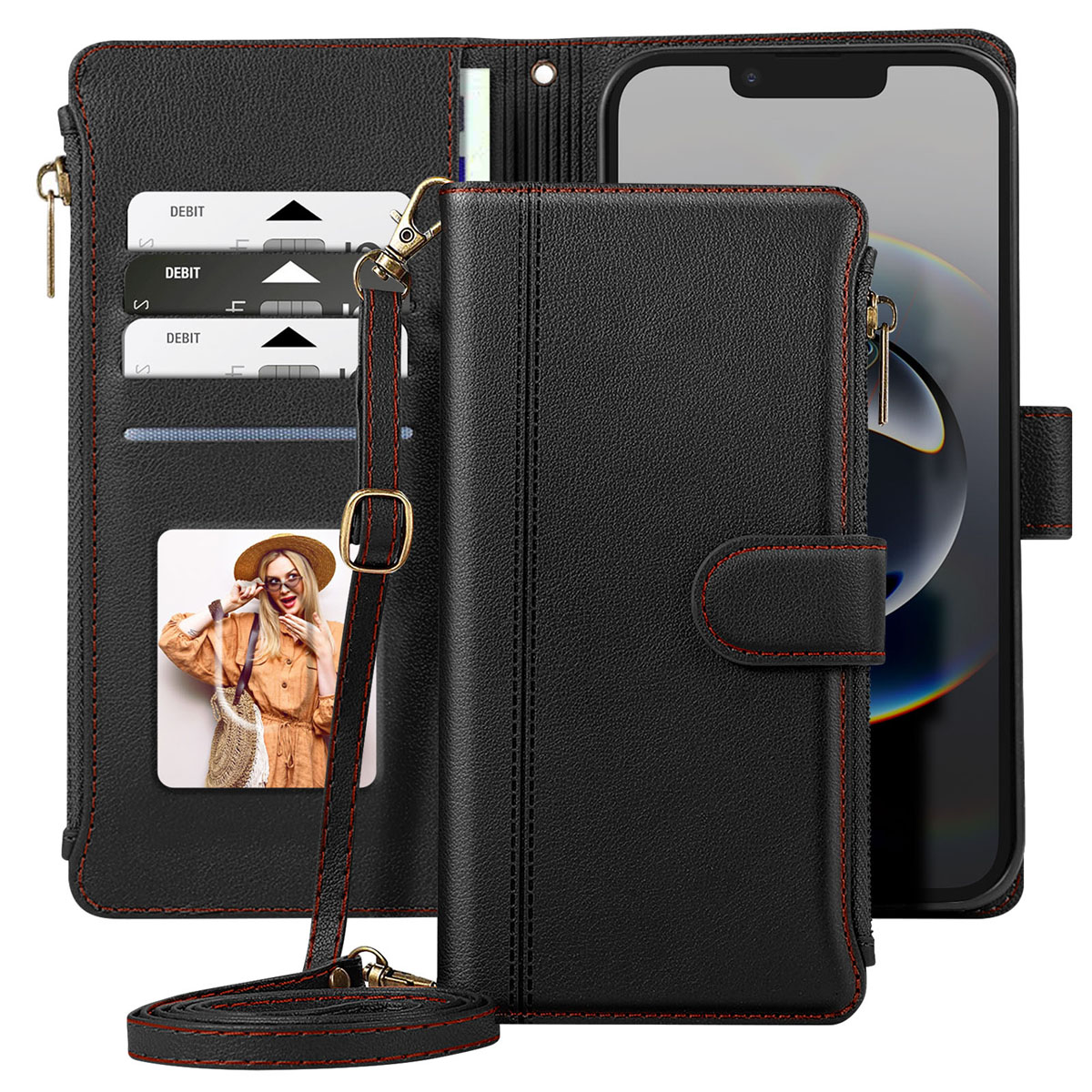 | Libellé | Avizar Étui Folio pour iPhone 16e à Zip avec Bandoulière Amovible Noir |