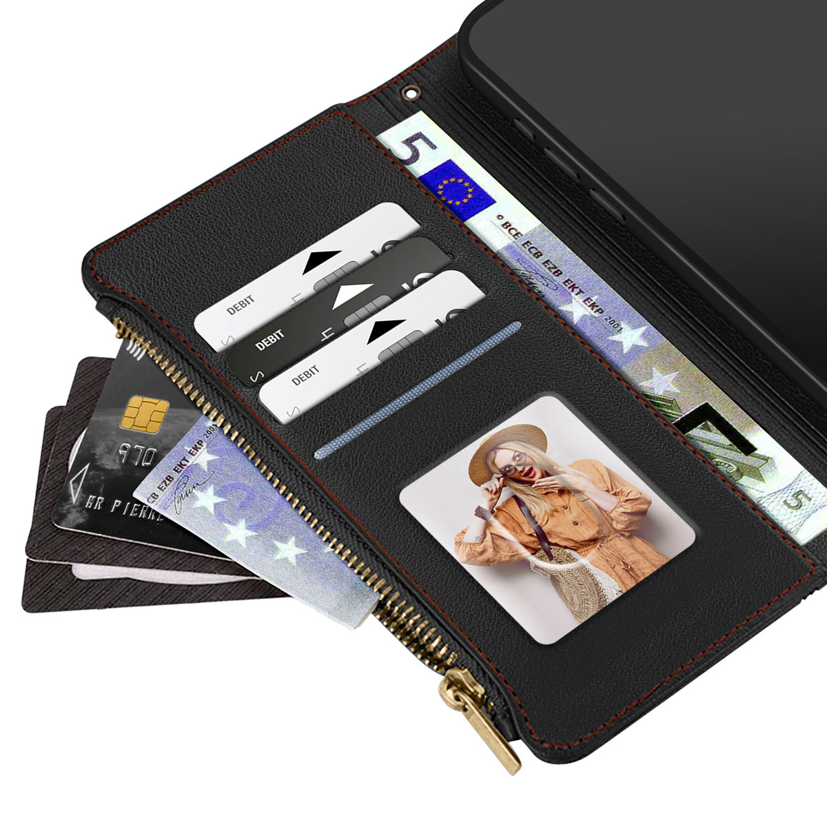 Étui portefeuille multifonction noir pour iPhone 16e, idéal pour allier protection, rangement et praticité au quotidien. Conçu en PU résistant avec une finition élégante, il intègre plusieurs emplacements cartes, une pochette zippée pour la monnaie, une fermeture magnétique sécurisée et une bandoulière amovible pour un port pratique en toute situation. Fonction support incluse pour visionnage confortable.