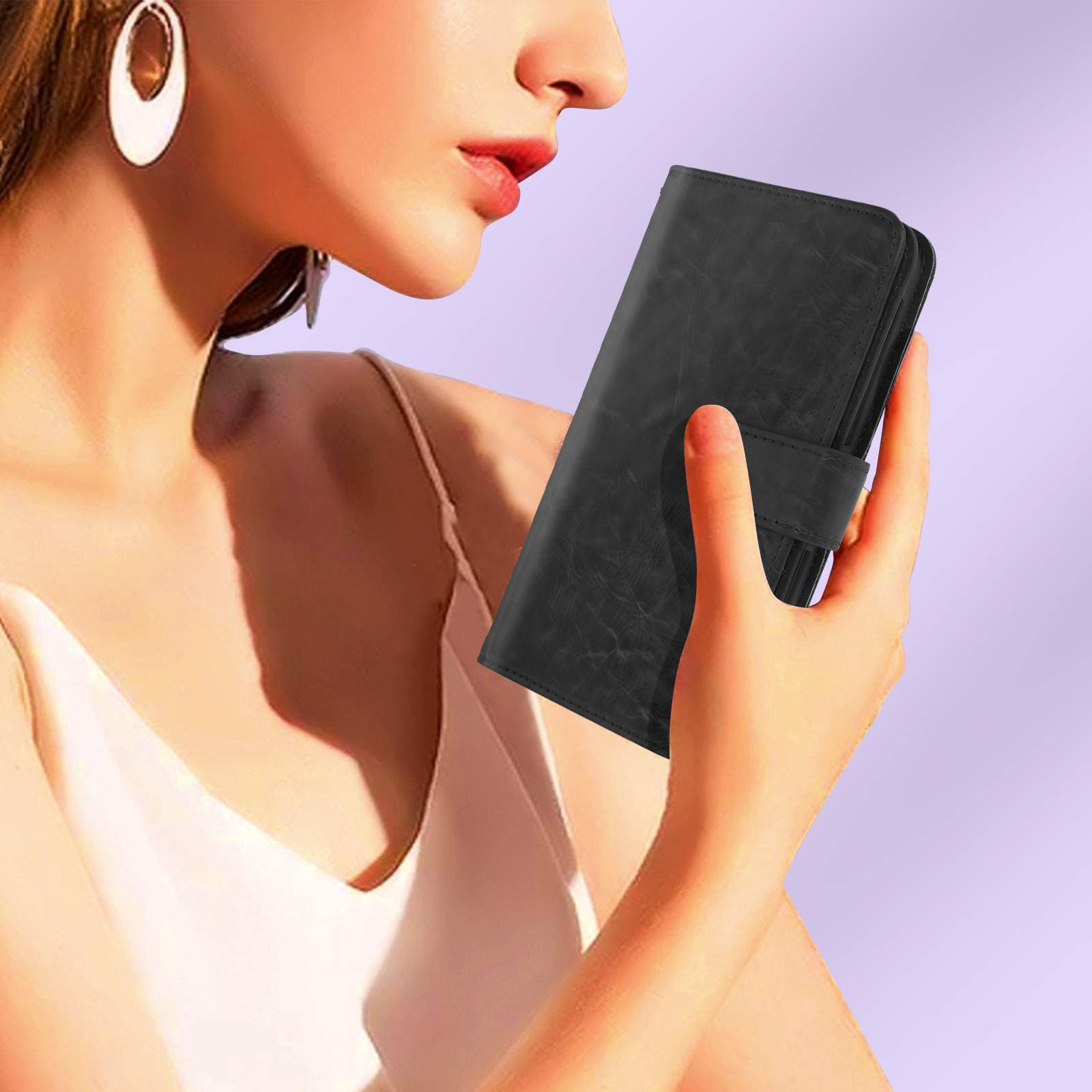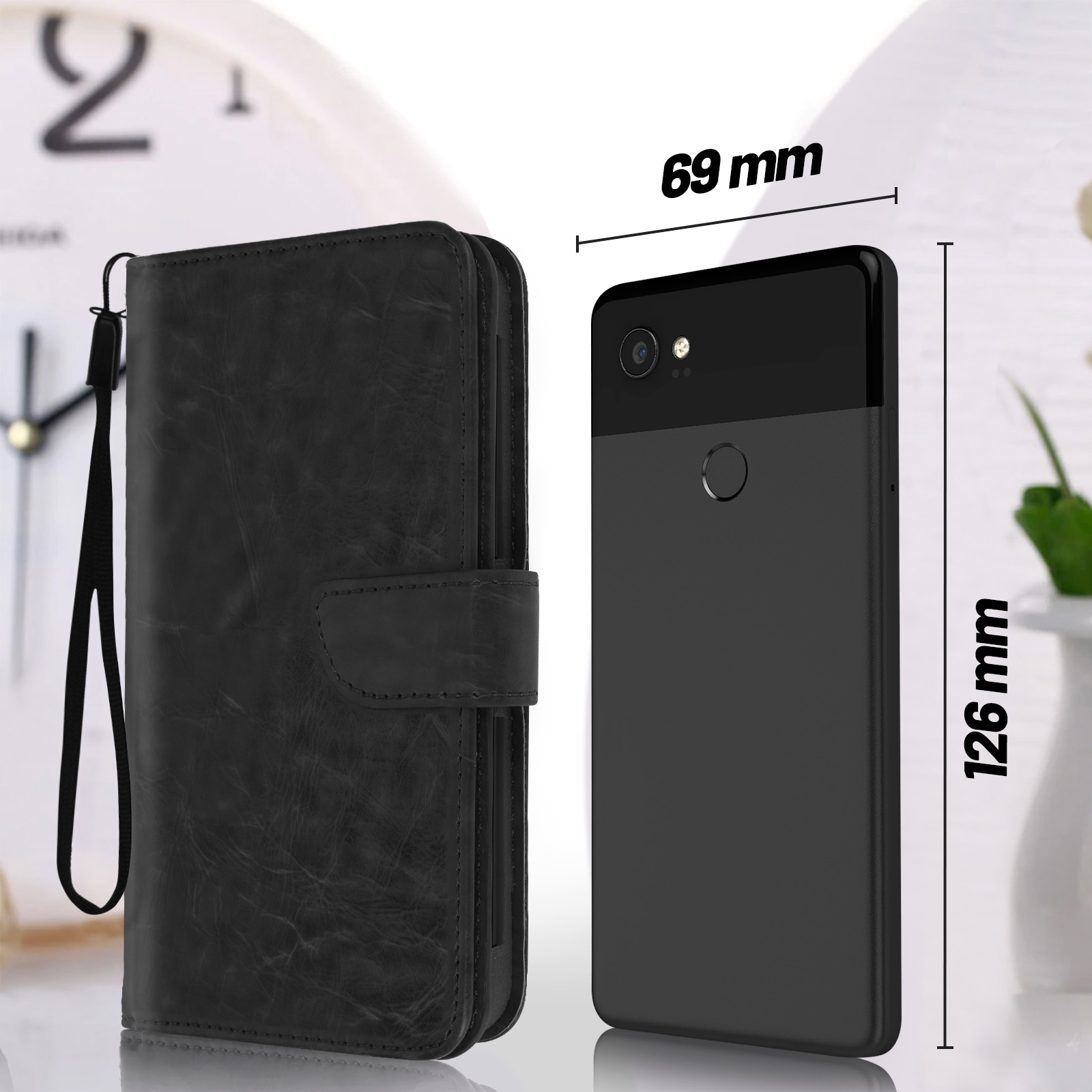 Libellé Avizar Étui Folio pour Smartphone Universel Taille M avec Porte-cartes Noir