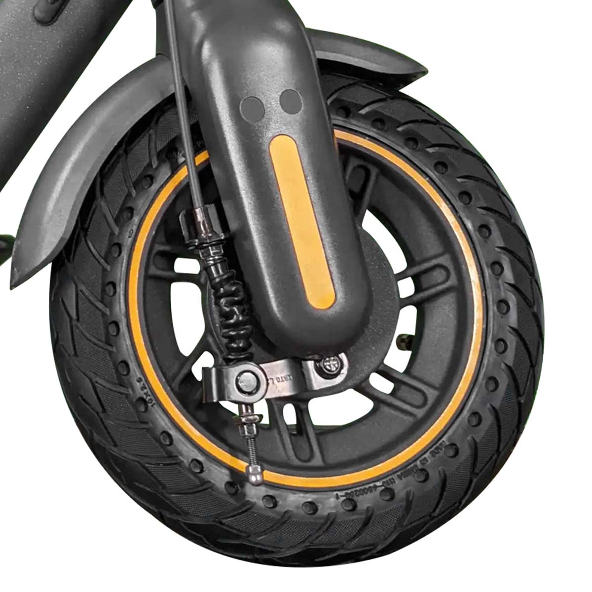 Ce pneu plein de 10 pouces est conçu pour la trottinette Ninebot G30. Grâce à sa structure sans chambre à air, il est totalement résistant aux crevaisons et ne nécessite aucun entretien. Fabriqué en caoutchouc haute densité, il offre une conduite stable, confortable et durable, même sur routes irrégulières. Parfait pour les trajets quotidiens ou intensifs.