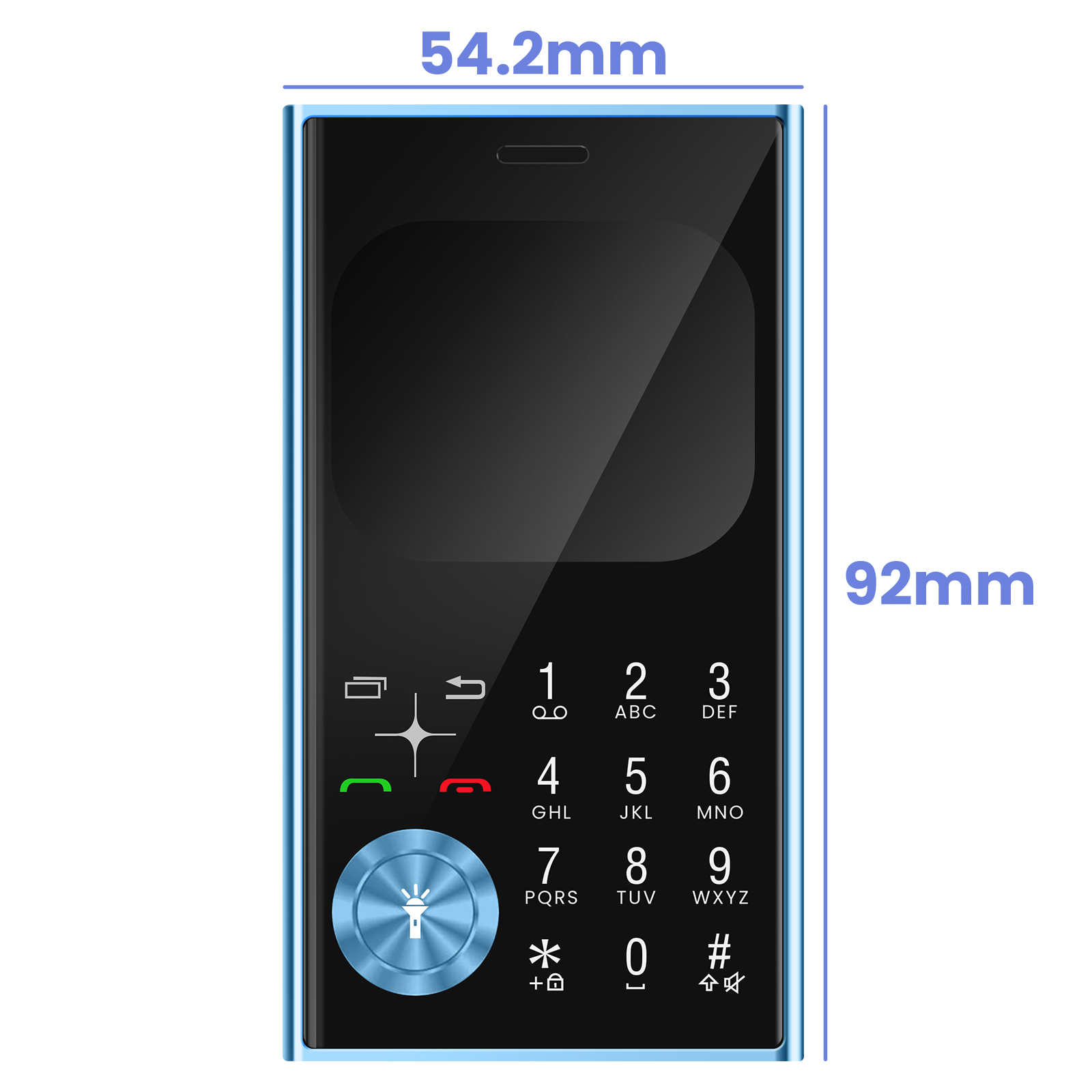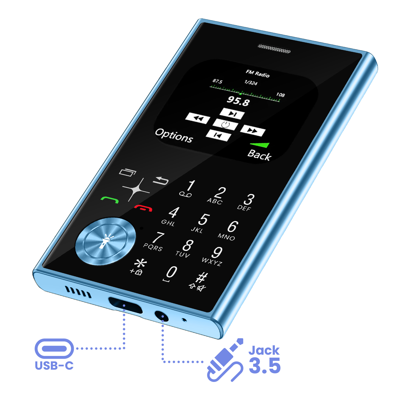 Téléphone portable compact et léger, parfait pour sénior. Design classique et élégant. Double SIM pratique. Écran lisible 2,01 pouces. Clavier à grandes touches. Caméra arrière avec flash. Radio FM sans Internet. Torche accessible. Prise jack 3,5 mm. Batterie durable 790 mAh. Recharge rapide par USB-C. Dimensions 92 x 54,2 x 8,8 mm.
