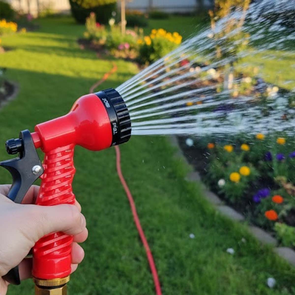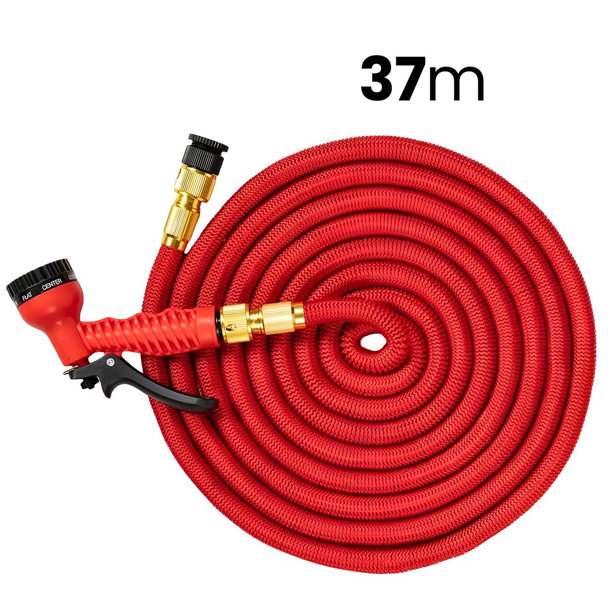 Passer le carrousel d'imagesCe tuyau d'arrosage extensible rouge est idéal pour l'entretien du jardin, le lavage de la voiture ou les tâches extérieures du quotidien. Il s'allonge automatiquement de 7.5 mètres jusqu'à 37 mètres sous la pression de l'eau, puis se rétracte facilement après usage pour un rangement compact. Léger et maniable, il est équipé de raccords robustes et d'un pistolet multifonctions offrant plusieurs types de jets.