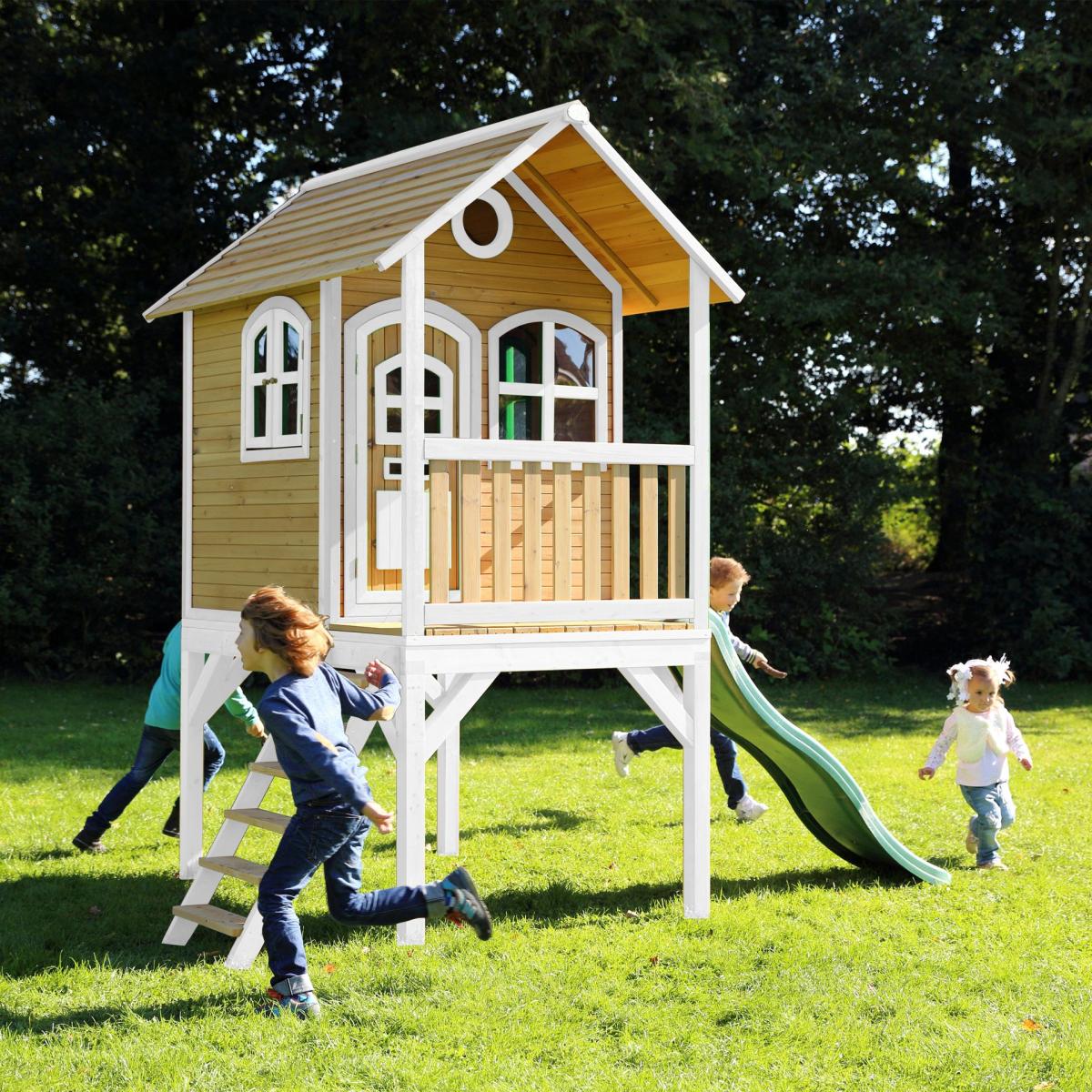 Libellé AXI Laura Maison Enfant avec Toboggan VERT | Aire de Jeux pour l'extérieur en marron & BLANChe | Maisonnette / Cabane de Jeu en Bois FSC