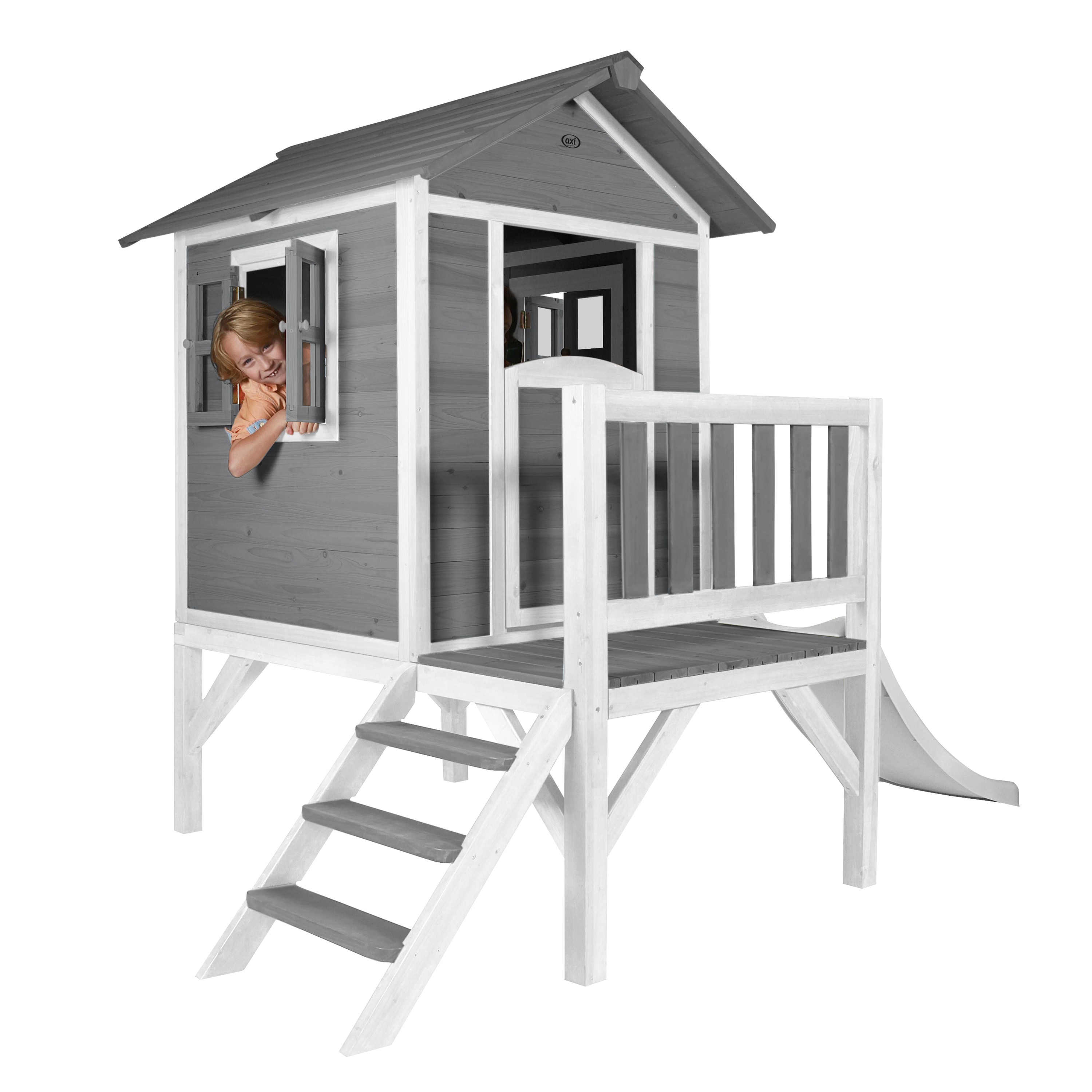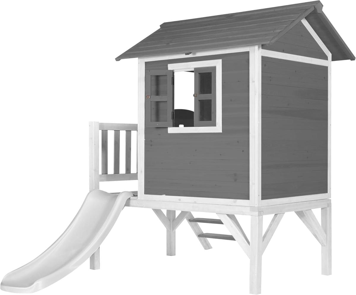 AXI Maison Enfant Beach Lodge XL en Gris avec Toboggan en BLANC | Maison de Jeux en Bois FFC pour Les Enf