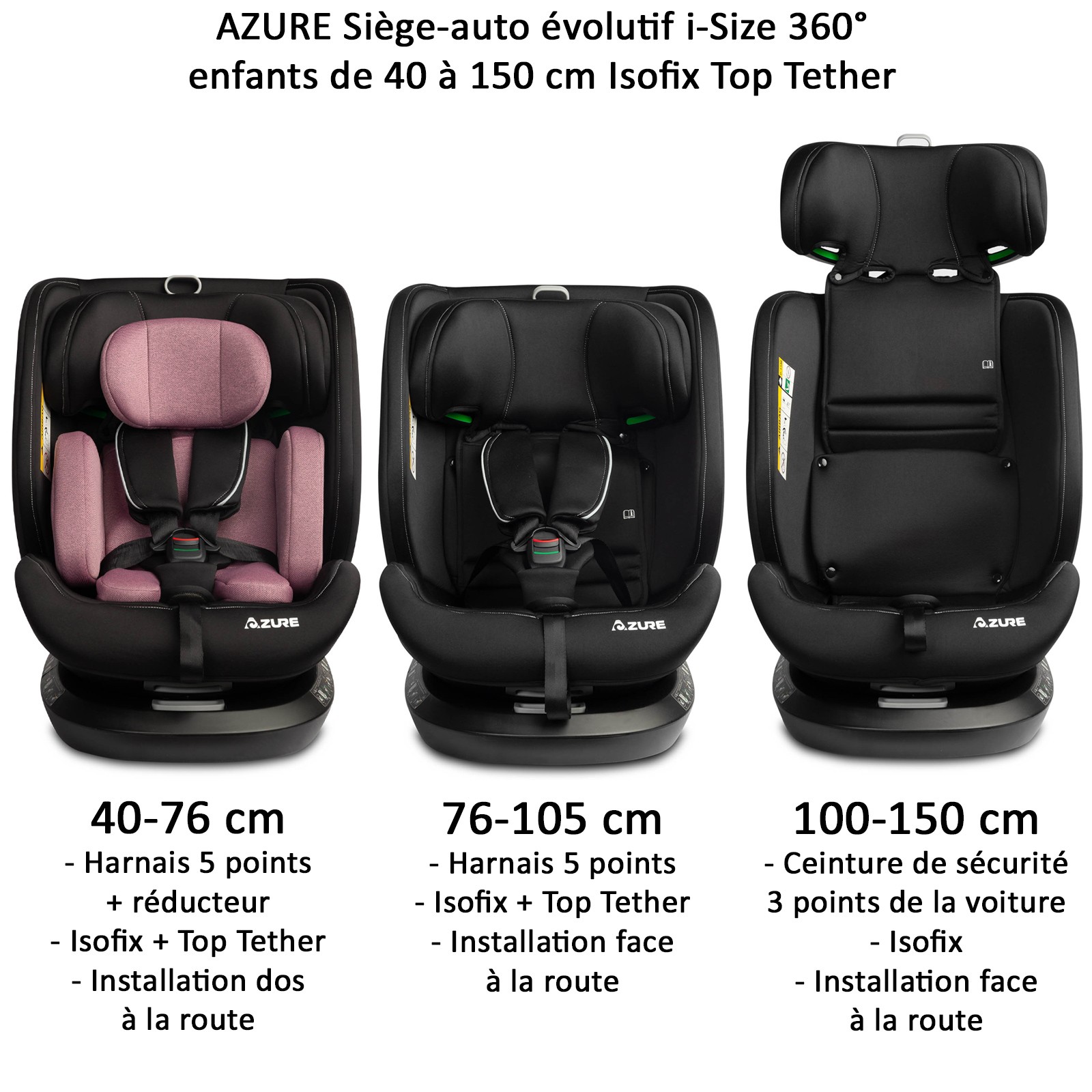 | Libellé | AZURE Siège-auto évolutif i-Size 360° enfants de 40 à 150 cm Isofix Top Tether Rose |