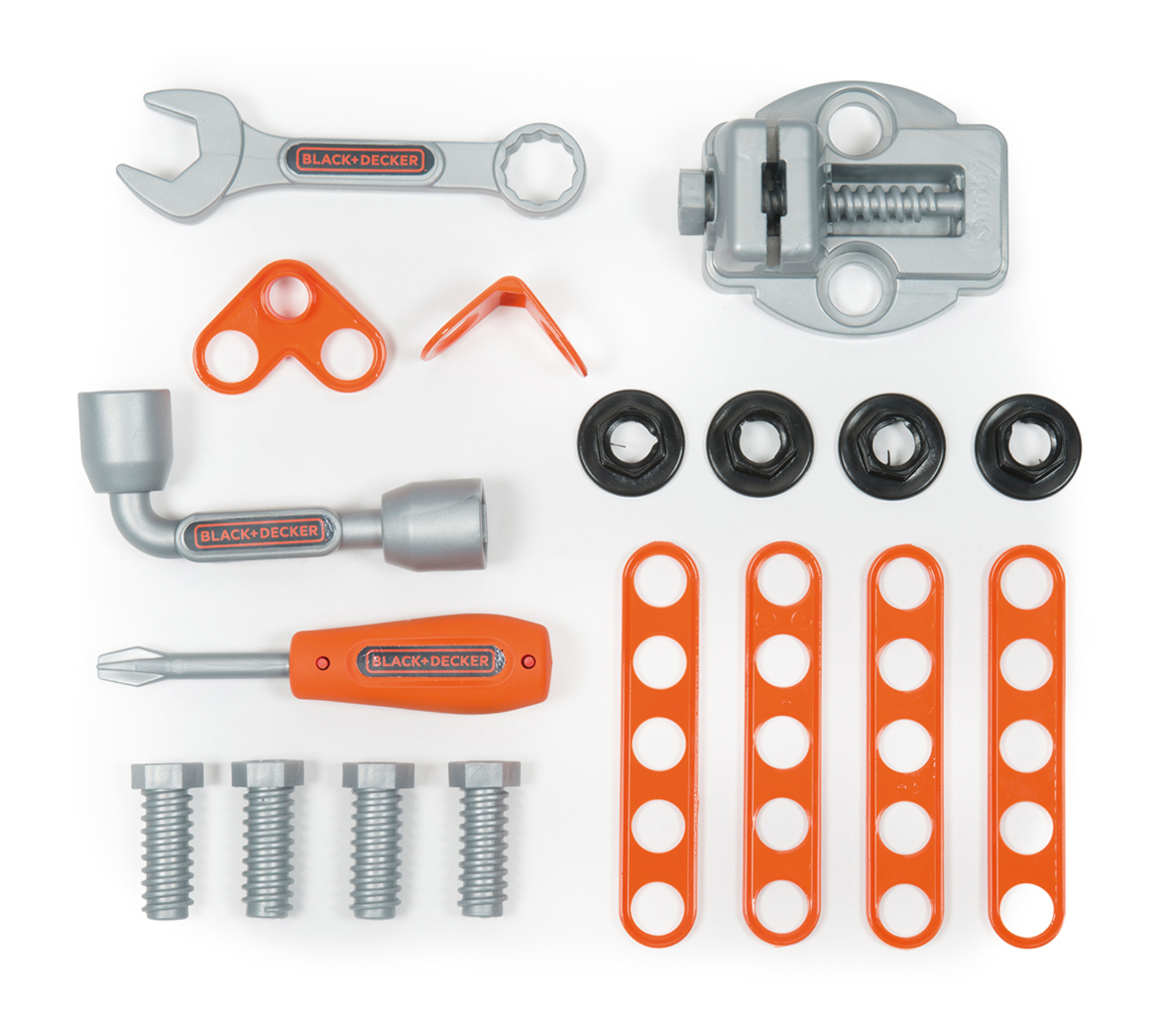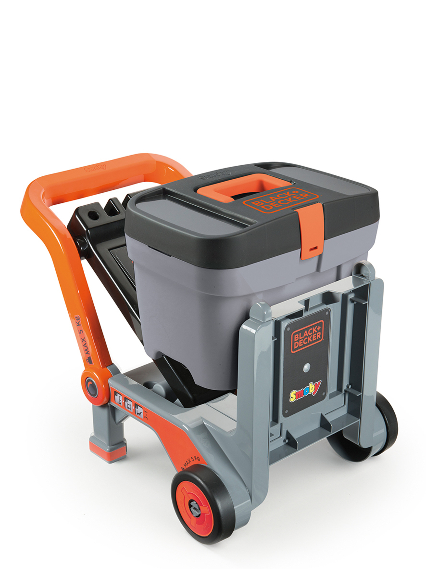 | Plus produit | Diable 3 en 1 Black + Decker : diable, établi, brouette. 19 accessoires inclus : 3 outils, 1 étau, 1 set de planches de construction, 4 vis, 4 écrous, 1 valisette de transport. |