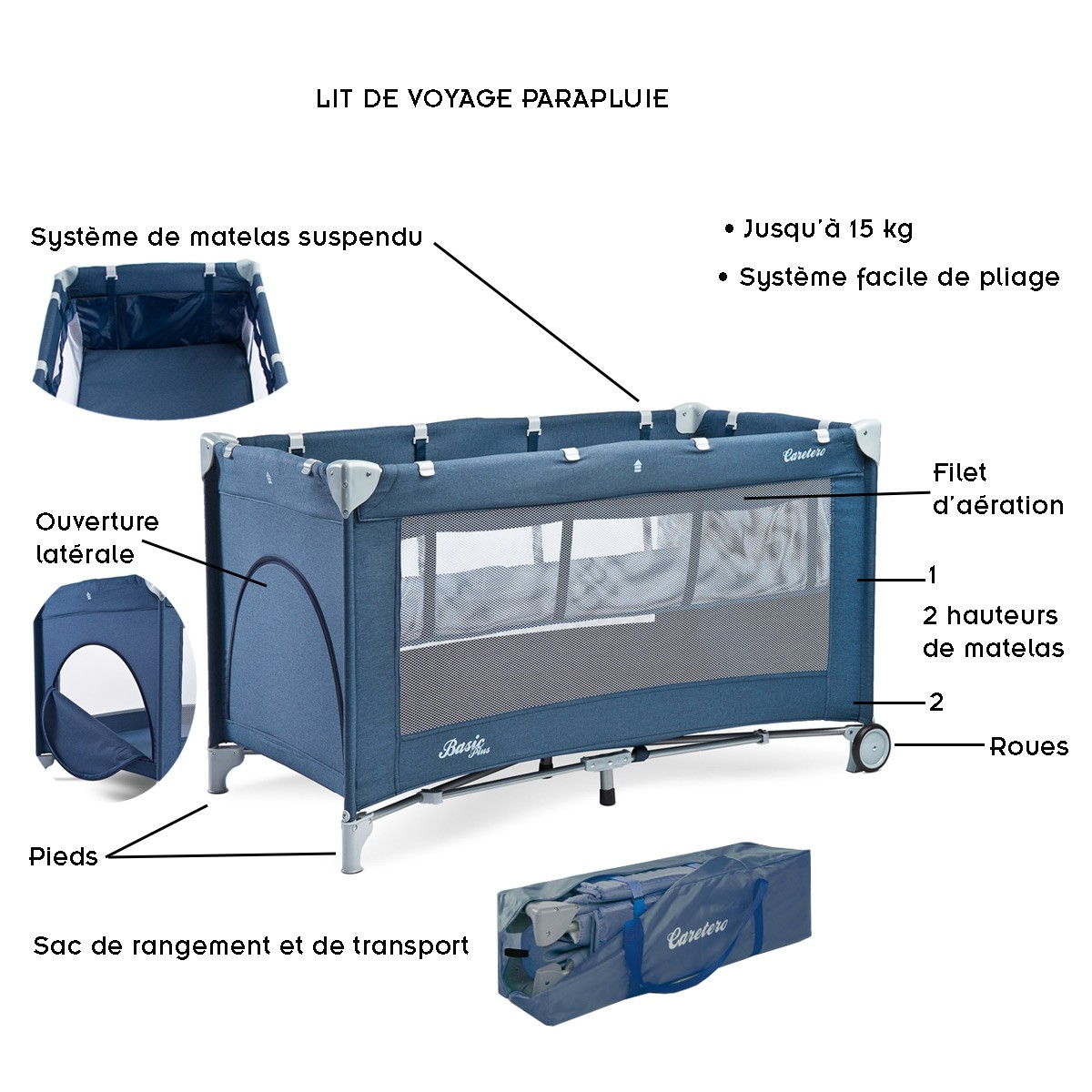 | Libellé | B plus lit parapluie de voyage bébé bleu marine |