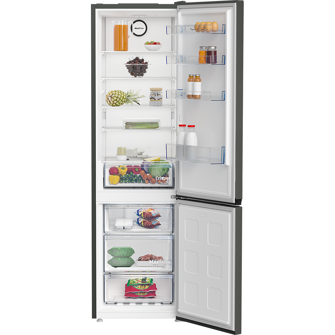 Réfrigérateur | Pose libre | Combiné | Froid ventilé | Ventilateur réfrigérateur | Volume total (litres) : 355 | Volume net du réfrigérateur (litres) : 249 | Volume net du congélateur (litres) : 106 | Classe d'efficacité énergétique : E | Niveau sonore dB(A) : 37 | Type de contrôle : Mécanique | Type de fabrique de glaçons : Bac à glaçons | Type de poignée : Intégrée avec finition métal | Dimensions (HxLxP) en cm | 203.5 | 59.5 | 66.3 | Manhattan Grey