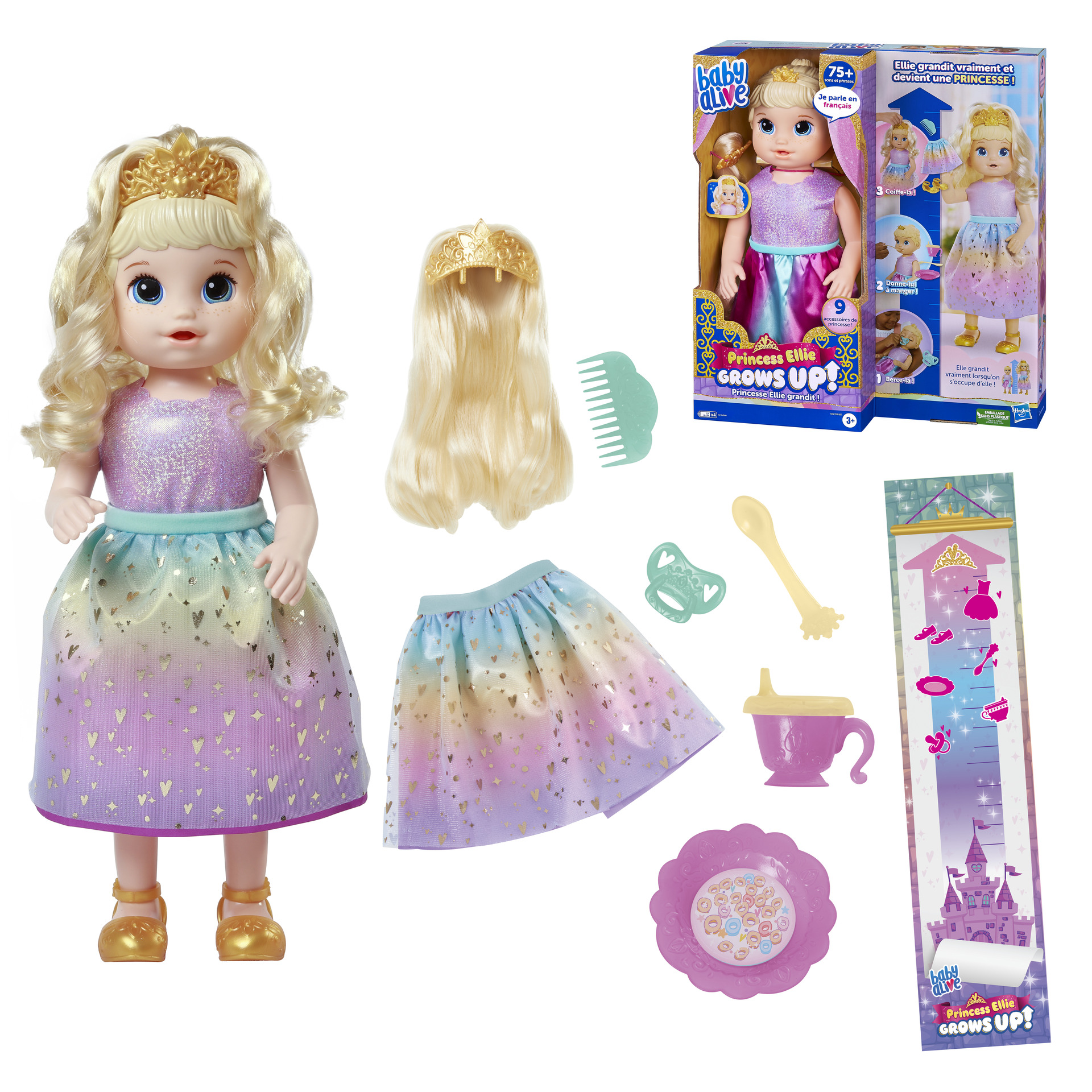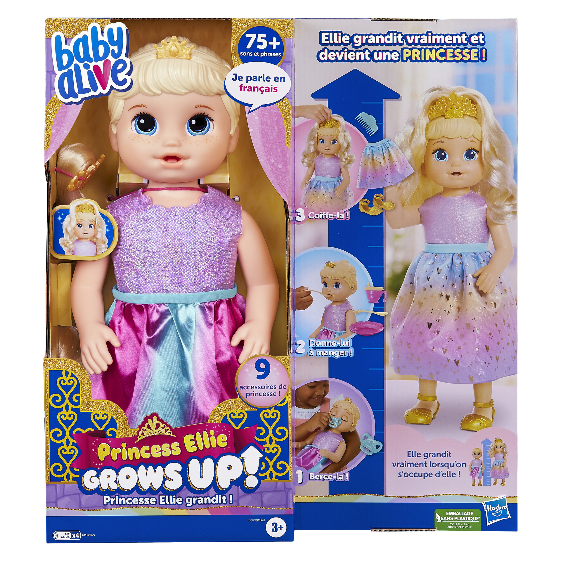 | Libellé | Baby Alive Poupée Princesse Ellie grandit !, poupée qui parle et grandit, cheveux blonds |