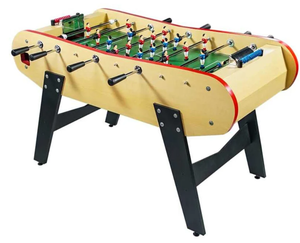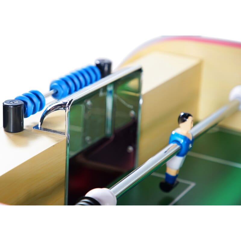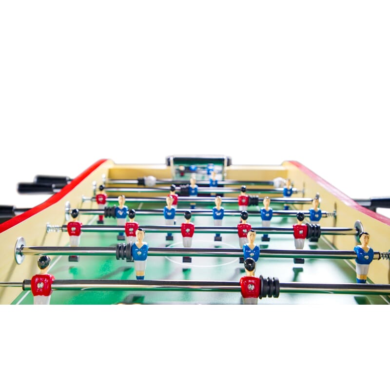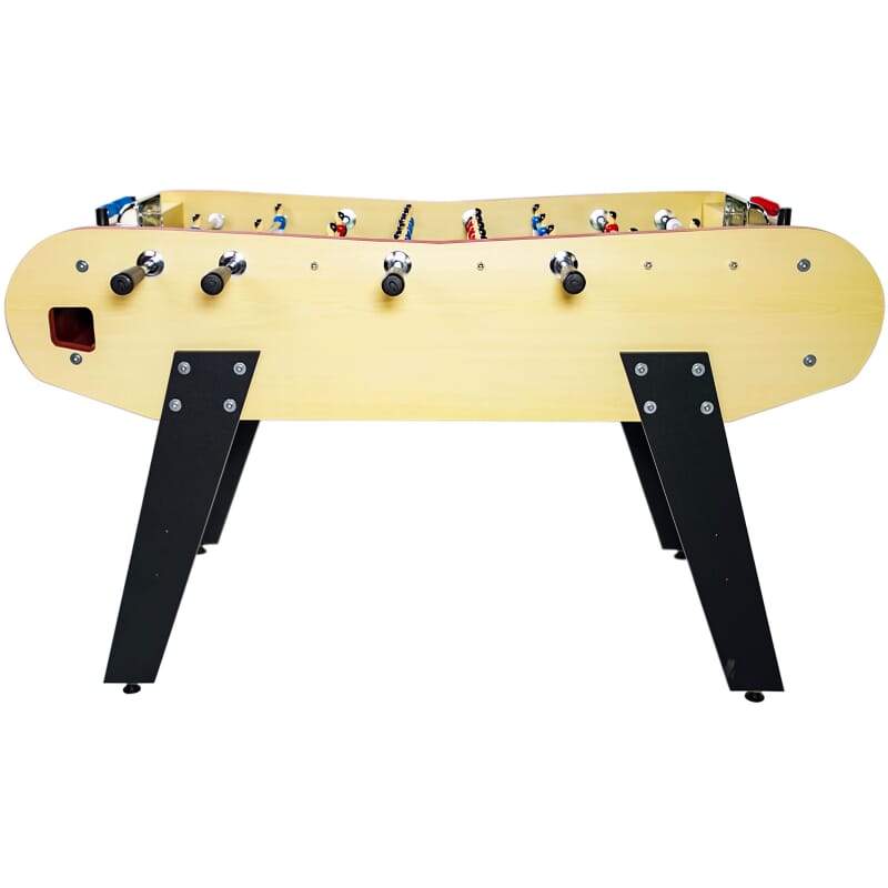 Le baby foot Campo est le meilleur babyfoot familial existant. Il reprend les caractéristique du Sportivo mais propose une structure allégée pour diminuer le prix mais conserve les caractéristiques premières d'un babyfoot de bar. Baby foot Campo Catenaccio: un produit pour les amoureux du football de table vintage Cette table a été lancée lors de la coupe du monde 2018 en Russie et a été pensée pour animer les soirées et les matchs autour d'une table de jeu. Vous pourrez jouer avec toute la famille avec ce modèle aux finitions exemplaires qui reprend les couleurs du babyfoot traditionnel. Créé pour rejouer les matchs de coupe du monde ou de n'importe quelle compétition de football, il existe des mini t-shirts à enfiler sur les bonhommes de votre table afin de transformer votre équipe classique bleue ou rouge en vraie équipe de foot et supporter votre pays avec fierté ! Ces maillots s'enfilent comme de vrais tshirts et vous pourrez ainsi organiser vos propres tournois à la maison. Catenaccio Campo bois clair : un babyfoot pas cher de qualité Ce baby foot pas cher possède une caisse et les pieds en bois MDF mélaminé couleur hêtre pour la caisse et noir pour les pieds. Les joueurs en plastique peints à la main de couleur rouge et bleu sont vissés sur les barres de 15,8mm. Celles-ci sont en acier chromé et résisteront aux joueurs les plus sportifs. Le terrain en mélaminé est de couleur verte et tracé comme un vrai terrain de foot. Une fois un goal marqué, la balle redescendra sur le coté des cages pour être récupérée par la personne qui a encaissé le but. Le baby foot Campo de Catenaccio pèse 50kg, ce qui offrira une bonne stabilité pour les parties entre enfants mais aussi entre adultes. Vous trouverez derrière les cages des compte-points de la même couleur que les équipes (rouge VS bleu) qui vous permettront de suivre le score ! Ce baby foot Campo bois clair est livré avec 4 balles en liège naturel et est fourni avec sa notice de montage. Il est garanti 2 ans. Matière caisse: Bois MDF mélaminé hêtre Matière barres: Acier chromé Type de barre: Télescopiques Matière des joueurs: Plastique Balles livrées: Livré avec 4 balles en liège Largeur: 73 cm Longueur: 155 cm Hauteur: 90 cm Poids: 50 kg Monnayeur: Non