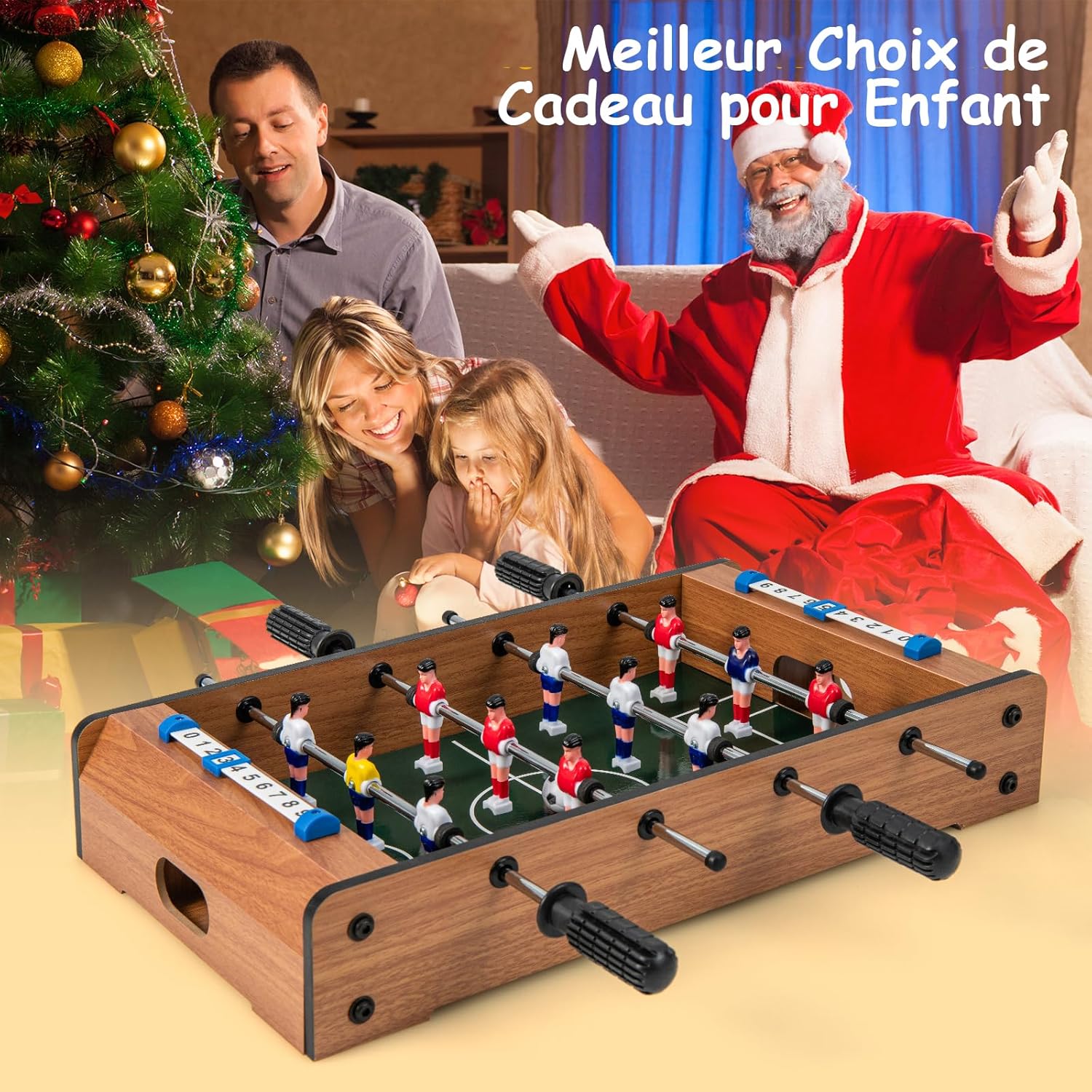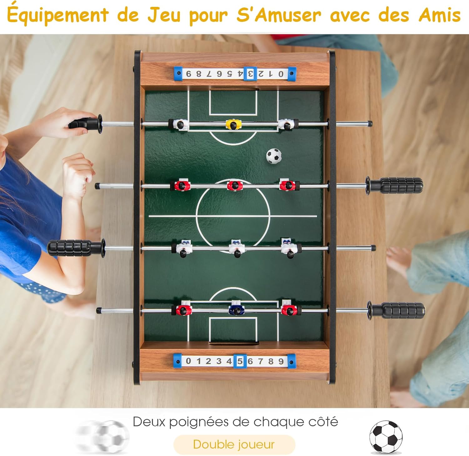 Baby-foot en bois avec poignée durable, table de jeu pour adulte et enfant avec 2 ballons, coins arrondis