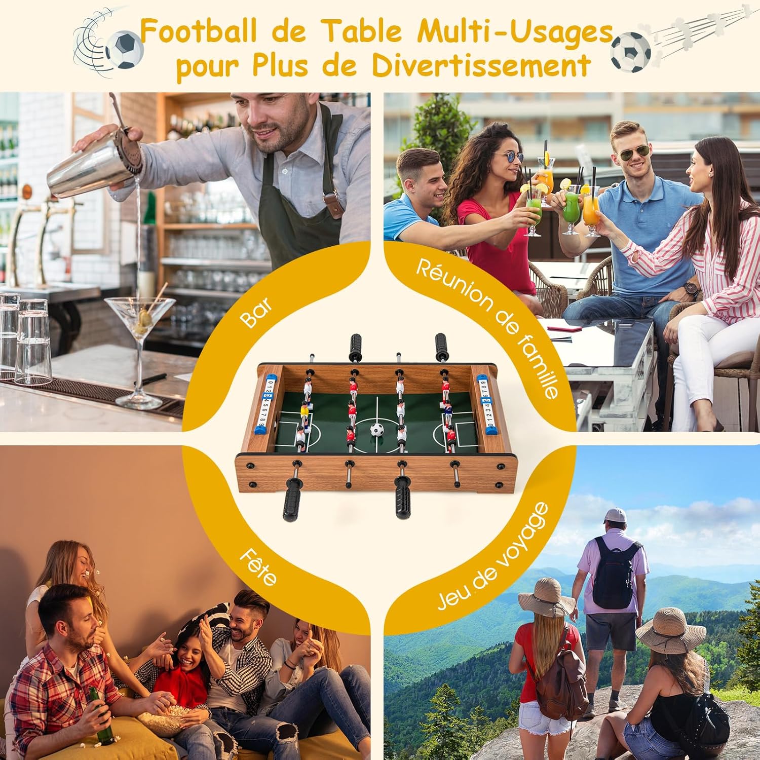[ Occasion multi-usage ] Ce baby-foot multi-usage est parfait pour les réunions de famille, les anniversaires, les voyages et le bar, vous offrant plus d'opportunités de rapprochement et de divertissement amusant.
