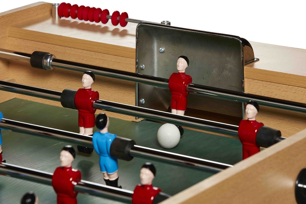 Baby foot «café» pour un usage ludique et familial. Excellentes sensations de jeu de café. Joueurs en métal décorés main. Meuble stable en panneau mélaminé.