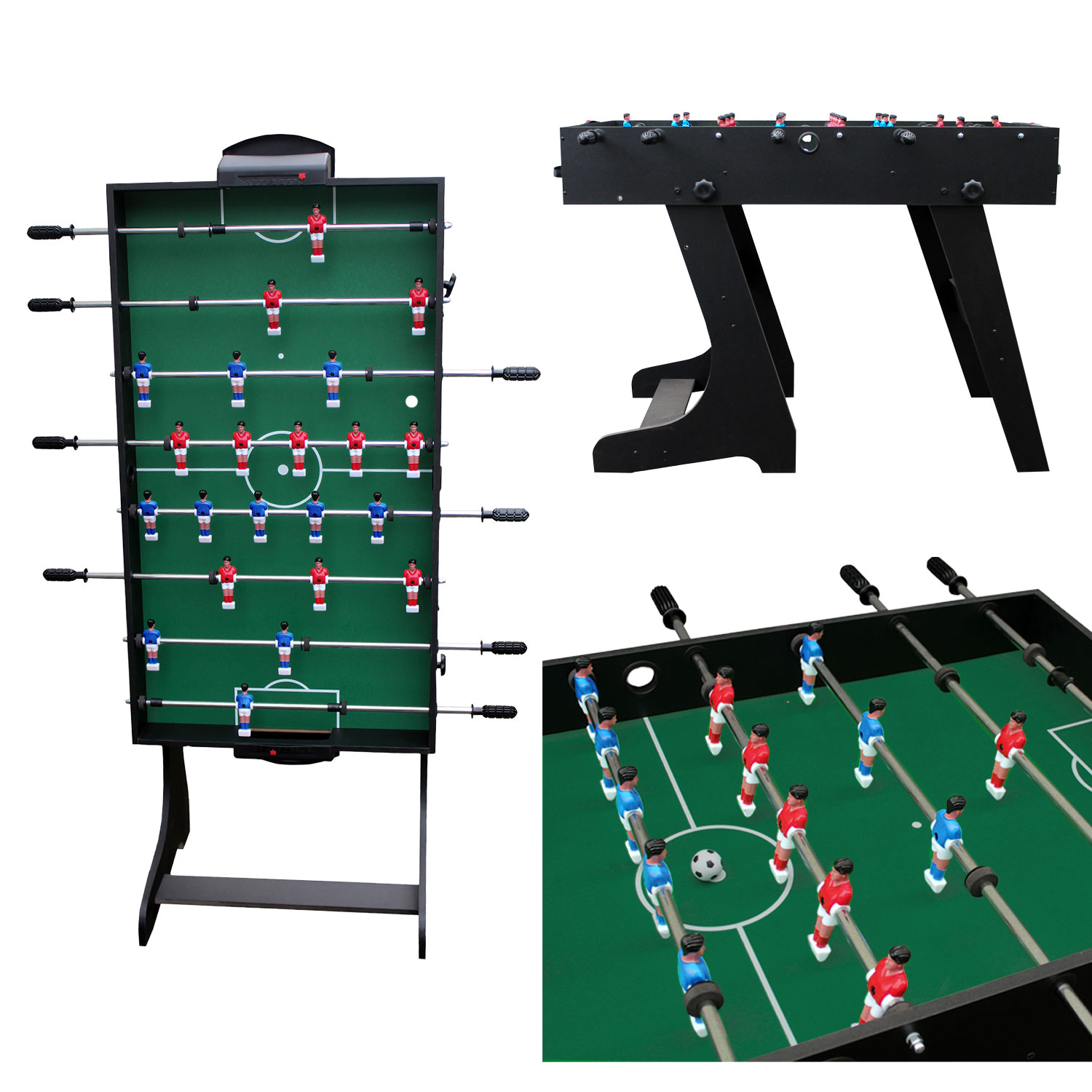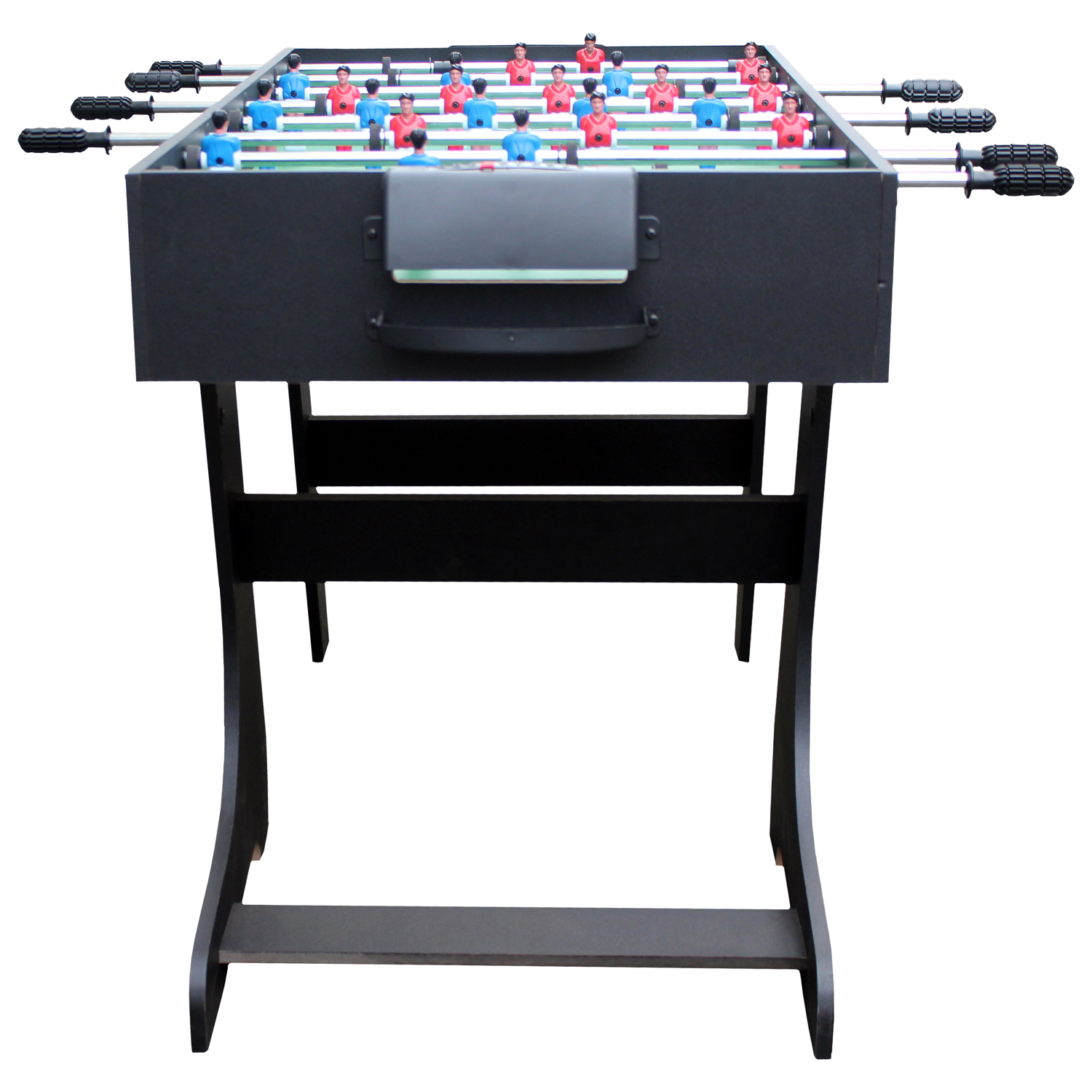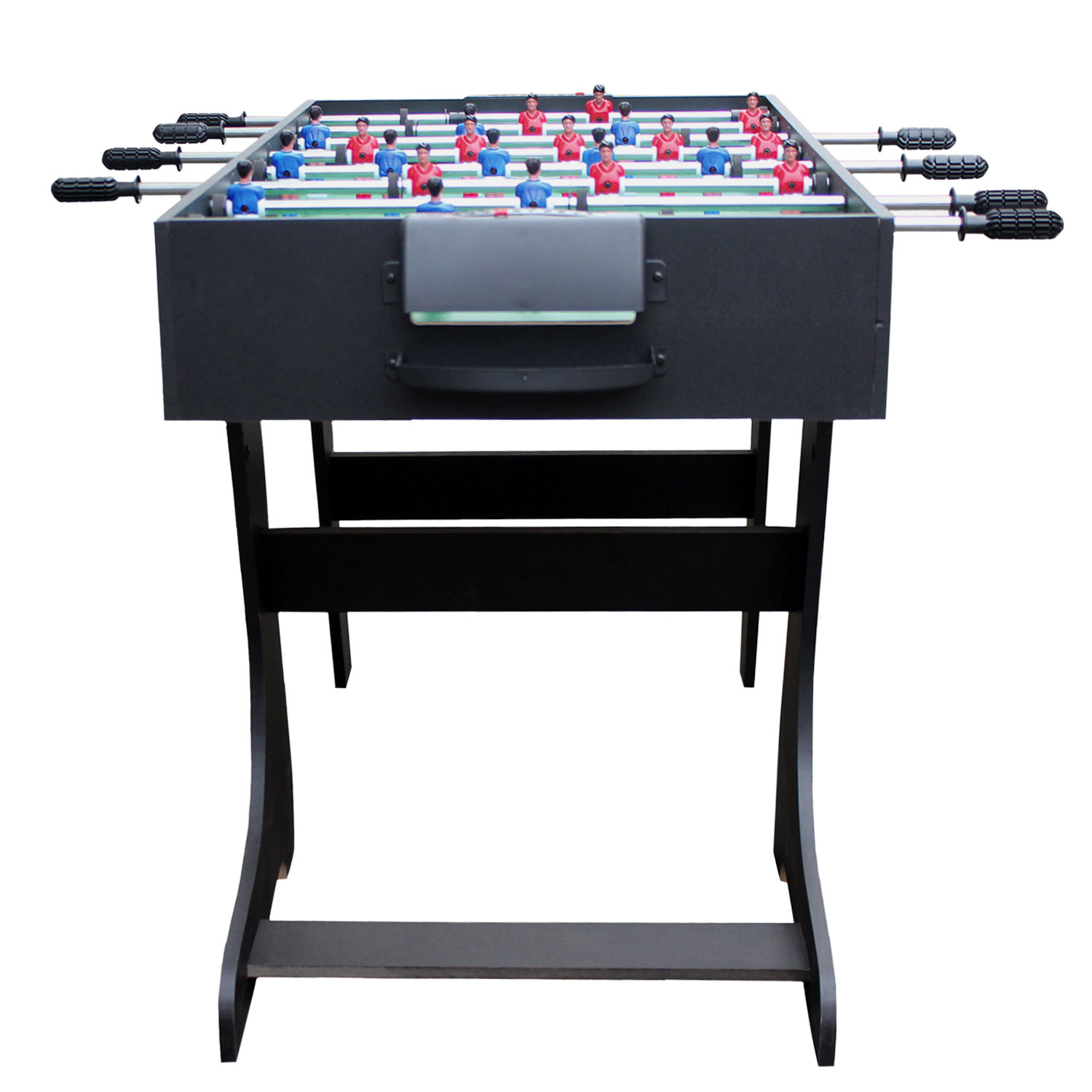 Grâce à ce baby-foot pliable, les petits découvriront le plaisir du football miniature sur table ! Faites-leur plaisir avec ce baby-foot pour enfant, à installer dans la chambre ou dans la salle de jeux pour des heures d'amusement et de loisirs. Il se plie verticalement pour pouvoir se ranger facilement contre un mur, permettant ainsi de gagner de l'espace dans la pièce lorsque les enfants ont fini d'y jouer. Sa structure est fabriquée en MDF, qui allie la robustesse et la légèreté. Vous pouvez le monter et le déplacer facilement et pourrez le garder pendant plusieurs années sans qu'il ne s'abîme. Ce baby-foot pliant pour enfants contient 3 balles de jeu, de quoi s'en donner à cœur joie, à 2 ou à 4, dans des parties passionnées. Entre amis ou en famille, cela plaira à coup sûr à nos benjamins fans du ballon rond !