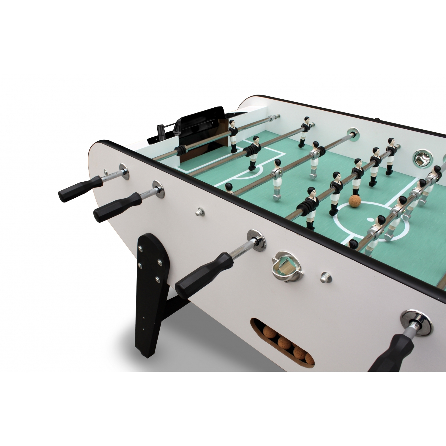 Reunissez vos amis autour de ce magnifique et elegant babyfoot et revivez vos plus beaux matches. Prenez le contrôle de la balle et maîtrisez le jeu. Son design stable et solide vous assure de pouvoir utiliser vos habitudes de jeu les plus fortes et vos tactiques les plus brillantes. Petit ou grand, debutant ou expert, il s'adaptera à vous et vous vous adapterez à lui facilement et rapidement. Et n'oubliez pas que le plus important, c'est de s'amuser !