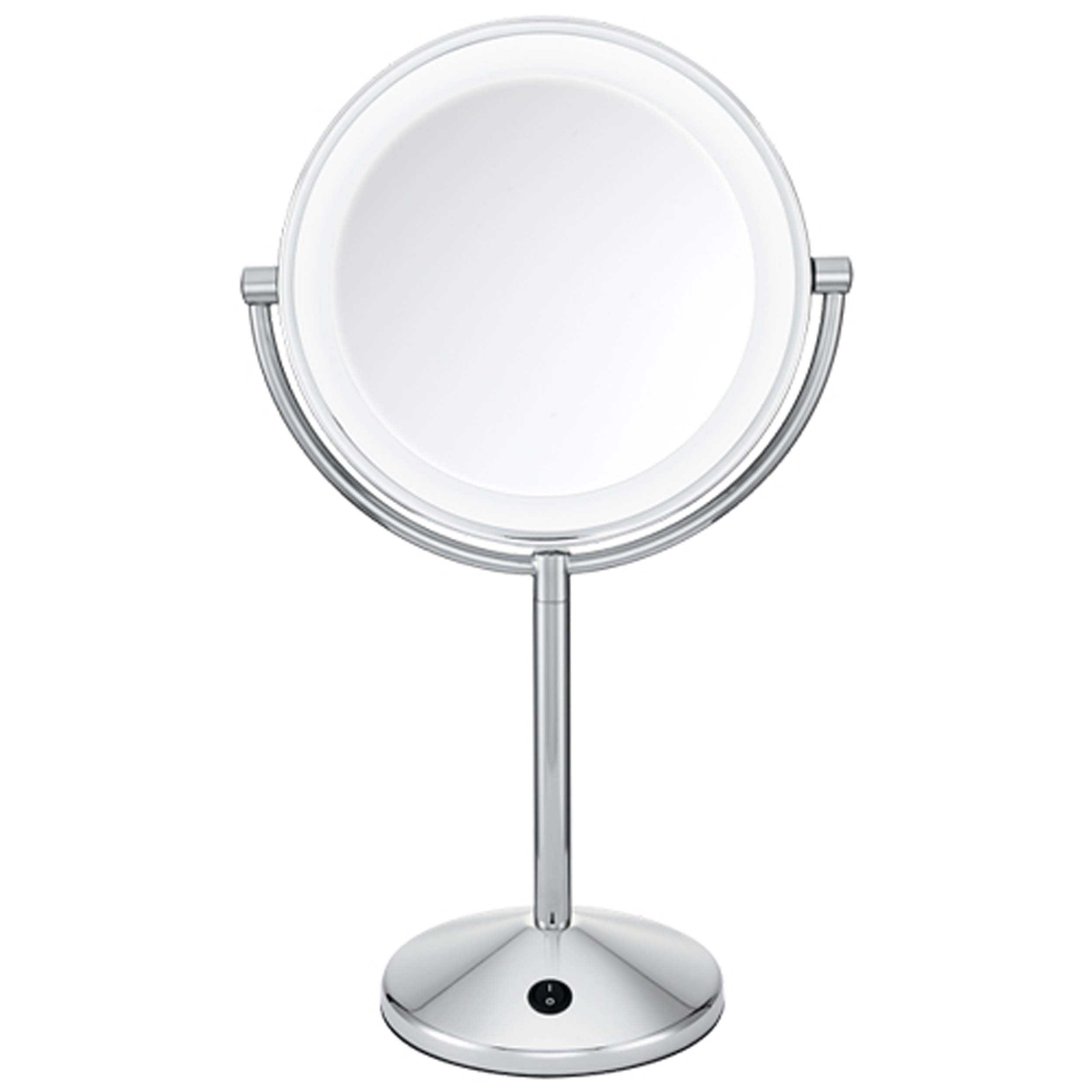 Miroir au fini chromé élégant et doté d'un éclairage ambiant doux. Sans fil pour une utilisation pratique dans toute la maison. Avec deux faces grossissantes X1 et X10, vous ne passerez à côté d'aucun détail. • Miroir deux faces • Grossissant X1/X10 • Éclairage doux • 1 position lumineuse • Ampoules LED • Fini chromé • Sans fil • Fonctionne avec 3 X AA piles (incluses) • Garantie 2 ans