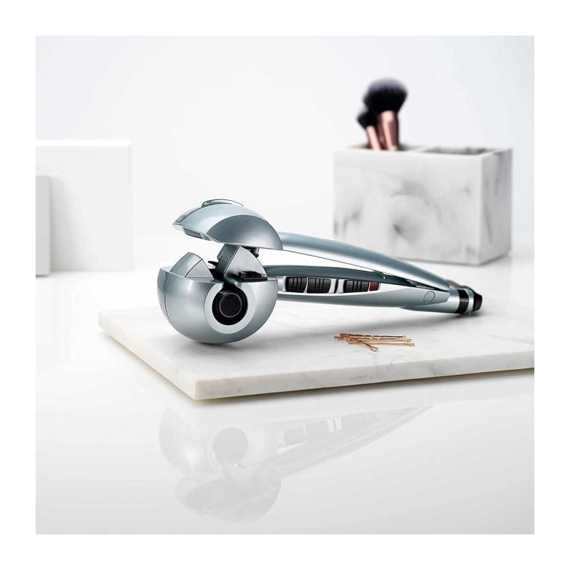 Boucleur automatique pour créer facilement des boucles infaillibles et longue tenue, doté d'un système d'émission de vapeur Hydrotherm™ pour hydrater le cheveu tout en le coiffant pour un résultat doux et brillant. Les cheveux sont automatiquement aspirés dans la chambre en céramique, dans laquelle ils sont enroulés et chauffés pour former une boucle parfaite. Des bips sonores indiqueront quand libérer la mèche. Avec le sélecteur de sens de rotation et 3 temps de pose, vous pouvez créer différents types de boucles pour des looks sublimes ou naturels. 3 températures 190°C, 210°C et 230°C. • Système d'émission de vapeur Hydrotherm™ • Technologie auto-curl • Sélecteur du sens de rotation • 3 temps de pose • Chambre en céramique • 3 températures 190°C, 210°C et 230°C • Chauffe rapide • Indicateur de chauffe • Arrêt automatique • Cordon rotatif 2,7 mètres • Garantie 3 ans
