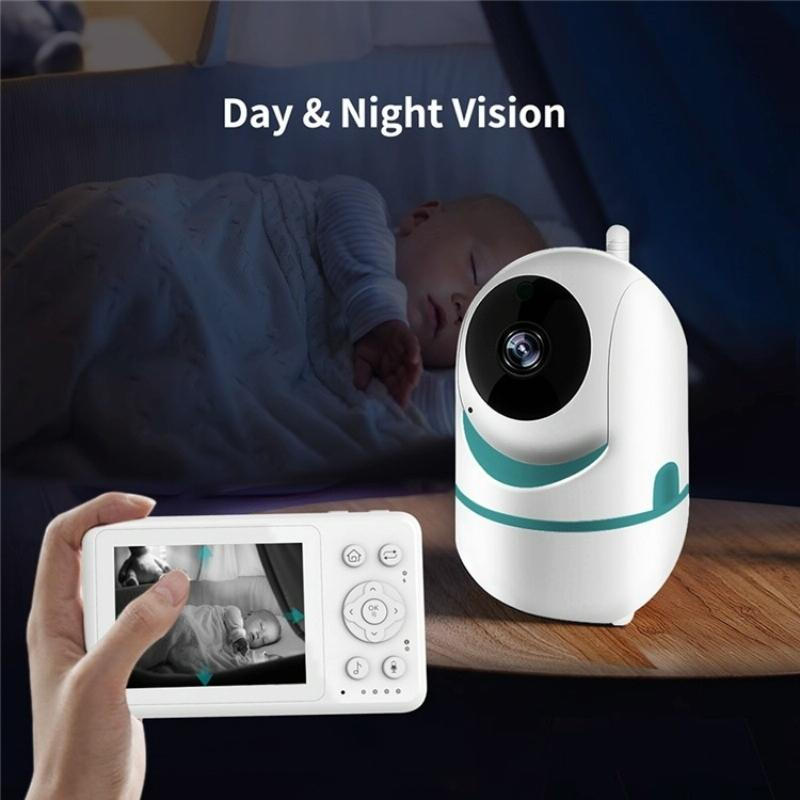 Le Babyphone Camera dispose d'un écran LCD de 3.2 pouces avec une résolution de 320x240. La vision nocturne permet une surveillance continue même dans l'obscurité, avec une portée de 3 à 5 mètres.