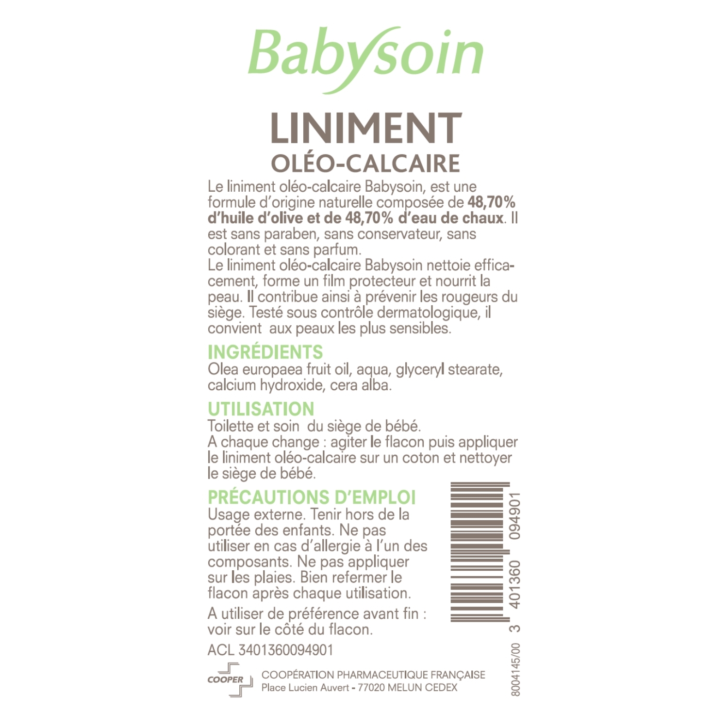 | Libellé | Babysoin Liniment Oléo-Calcaire 250ml |