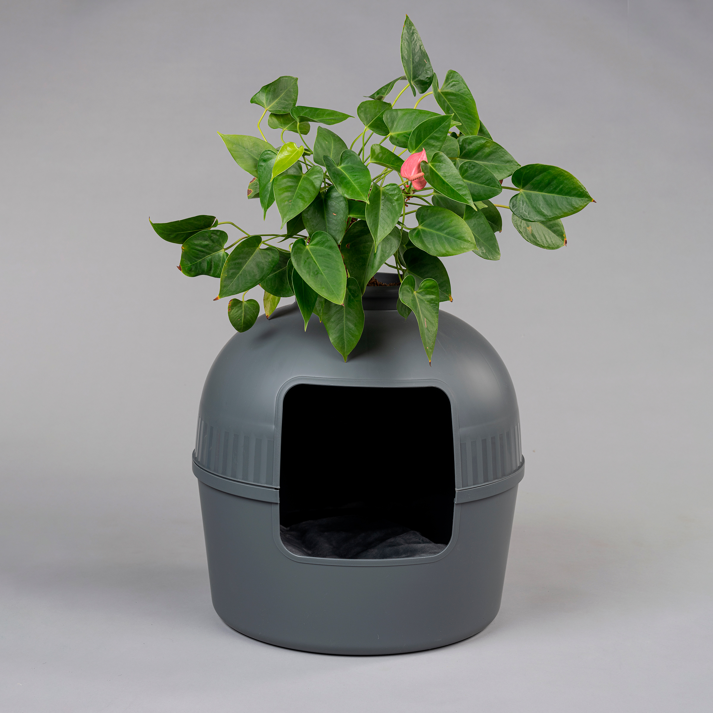 Le bac à litière Flower XXL est une variante tendance et polyvalente du bac à litière standard. Un véritable élément décoratif pourvu d’une toilette pour chat et pouvant accueillir une belle plante. Le coussin assorti (à commander séparément) vous permet de transformer le bac à litière XXL Flower en une cachette moderne et tendance pour votre chat. Le bac à litière Flower XXL anthracite est une toilette invisible pour chat. Vous pouvez facilement le personnaliser en posant une plante à son sommet, ainsi, il se fond parfaitement dans la pièce. Il peut également servir de merveilleux espace de repos ou de cachette à votre chat en y posant un coussin à l’intérieur, qui est également disponible sur notre site web. Sa forme ovale, grande entrée et partie supérieure entièrement amovible pour un nettoyage et assemblage sans effort. La grande entrée permet même aux plus grands des chats d’entrer et de sortir avec aisance. D’un diamètre de 51 cm et d’une hauteur de 55 cm, ce bac à litière mérite vraiment son appellation XXL.