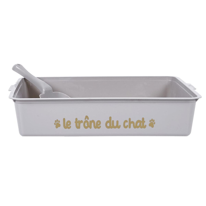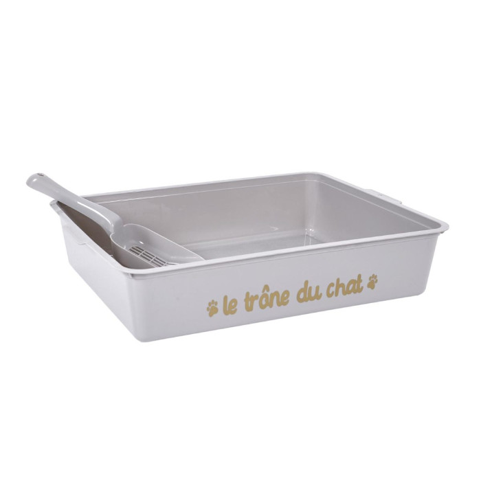 Bac à Litière & Pelle "Chat" 42cm Gris