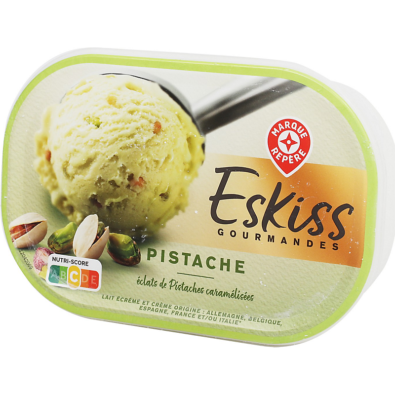 Glace à la pistache, aromatisée (98,2 %) avec des morceaux de pistaches grillées (1,8 %) ESKISS