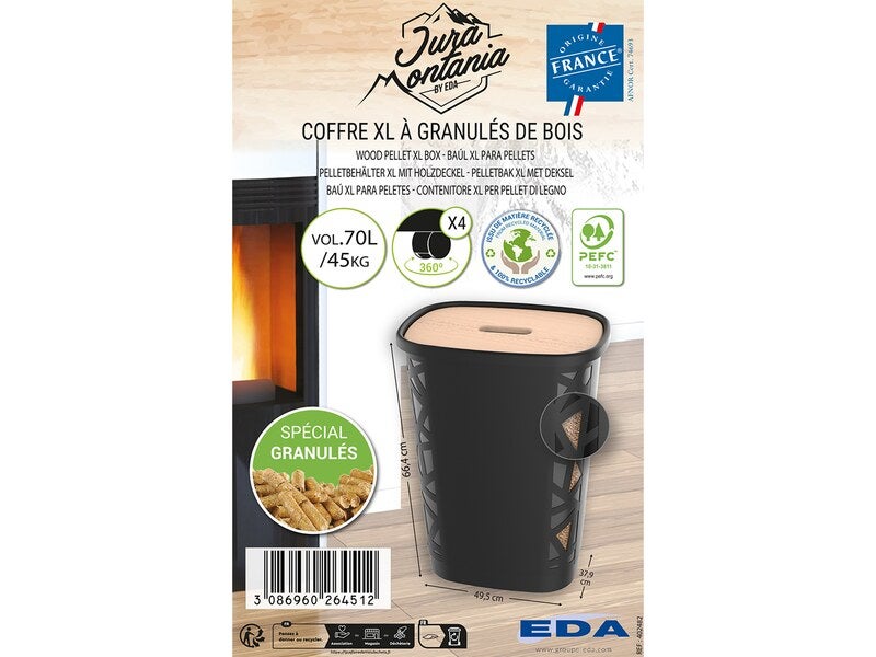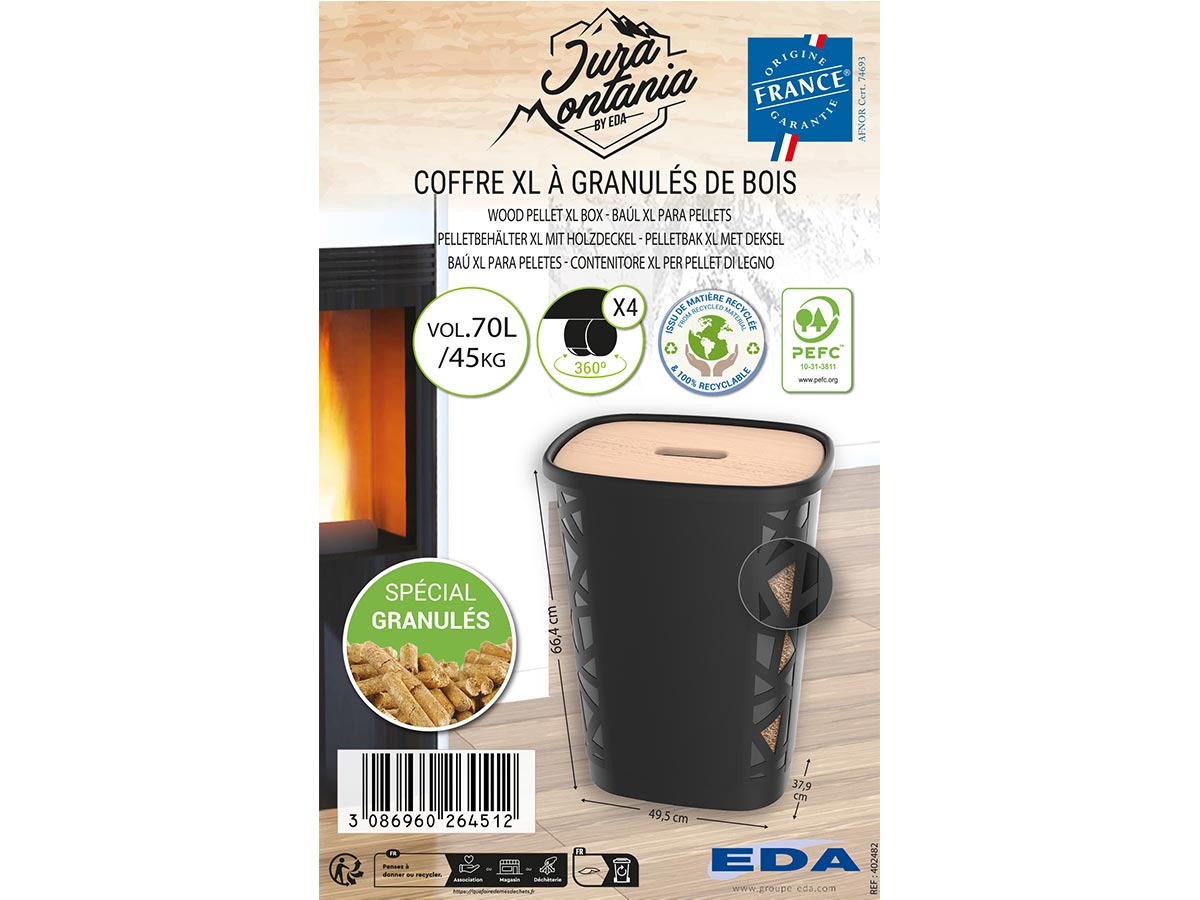 | Libellé | Bac de stockage de pellets EDA, 70 litres, noir |